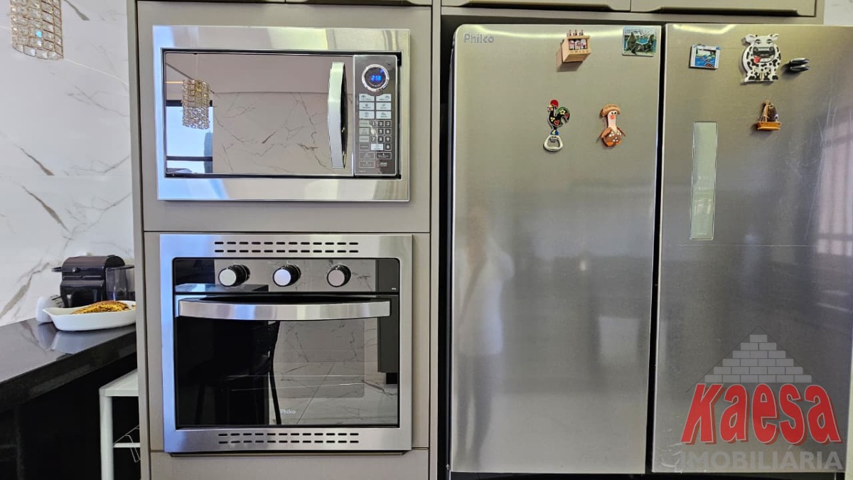 Cozinha americana com planejados e eletrodomésticos;