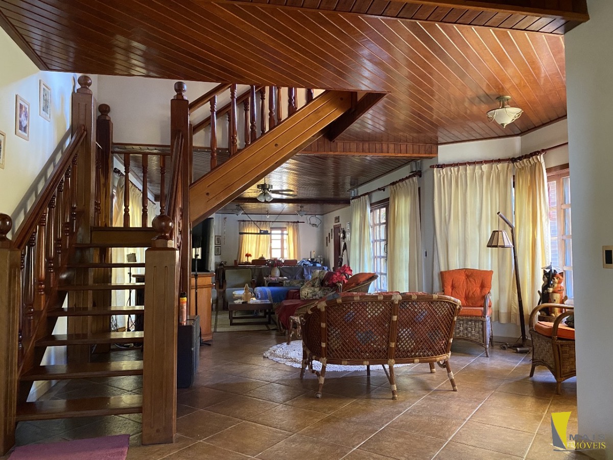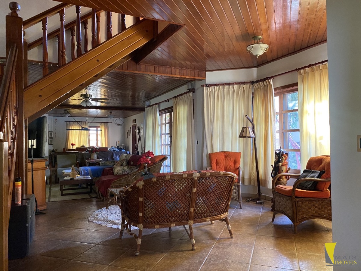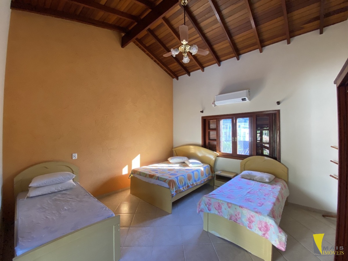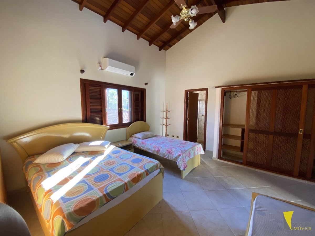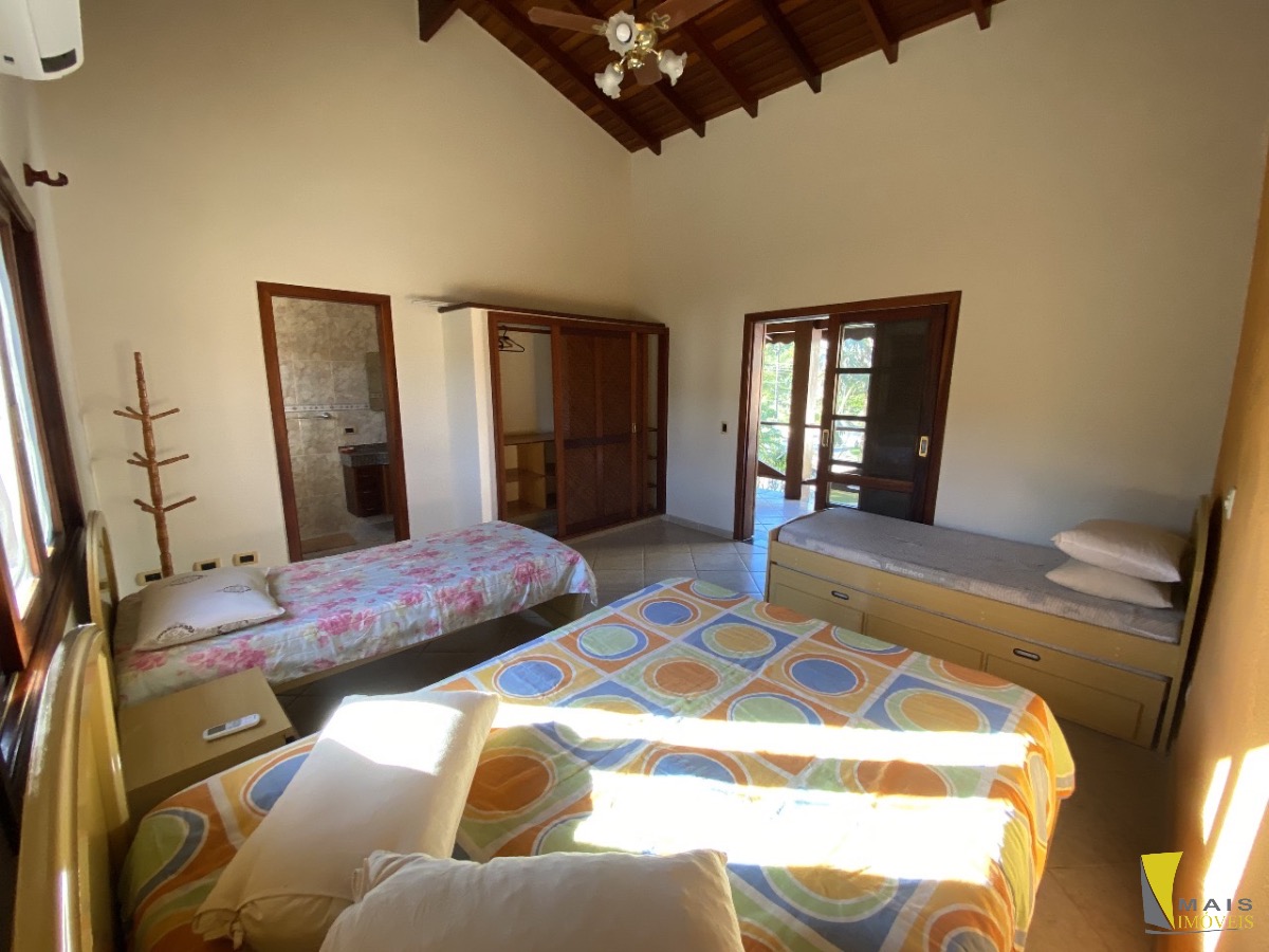 No piso superior, são 4 suítes, incluindo uma suíte máster com banheira de hidromassagem. A casa acomoda até 20 pessoas com total conforto.