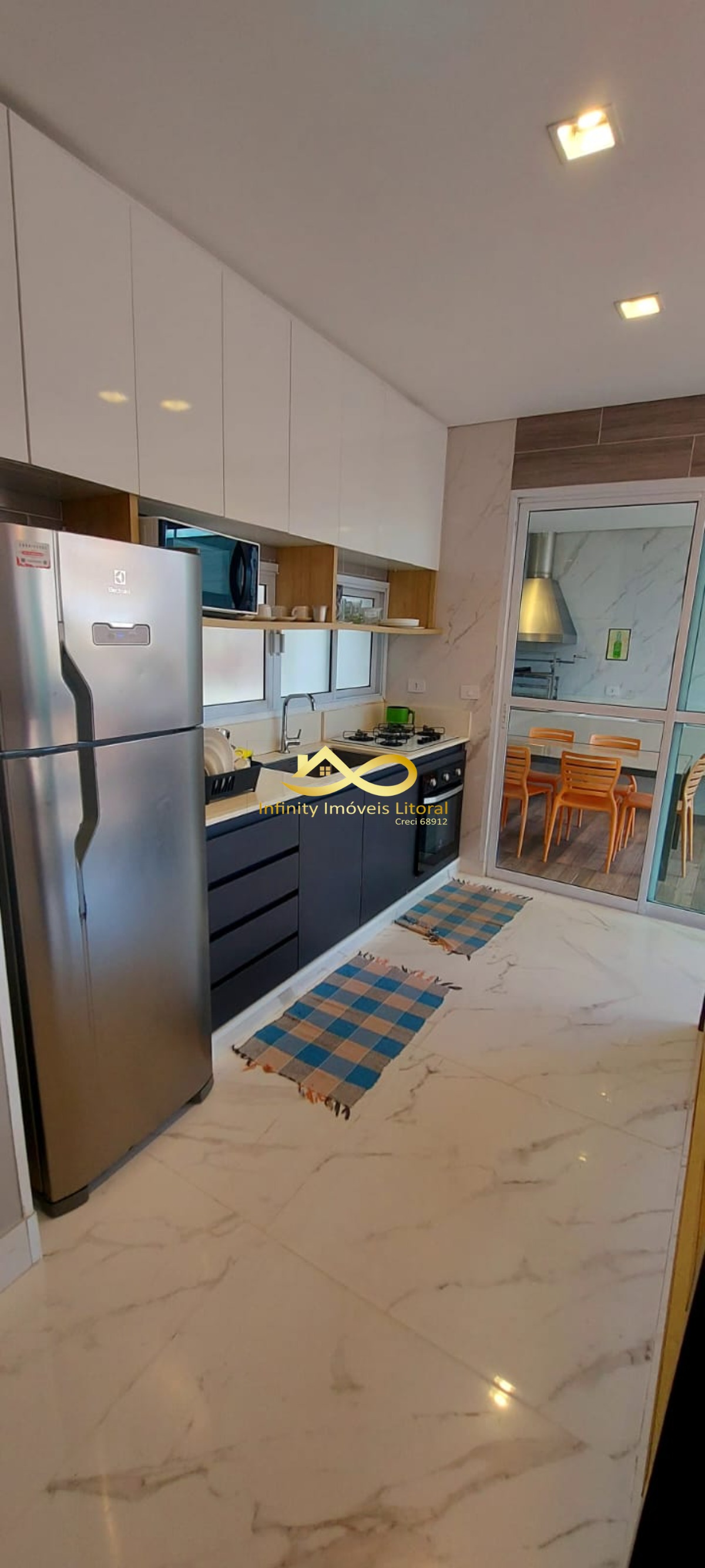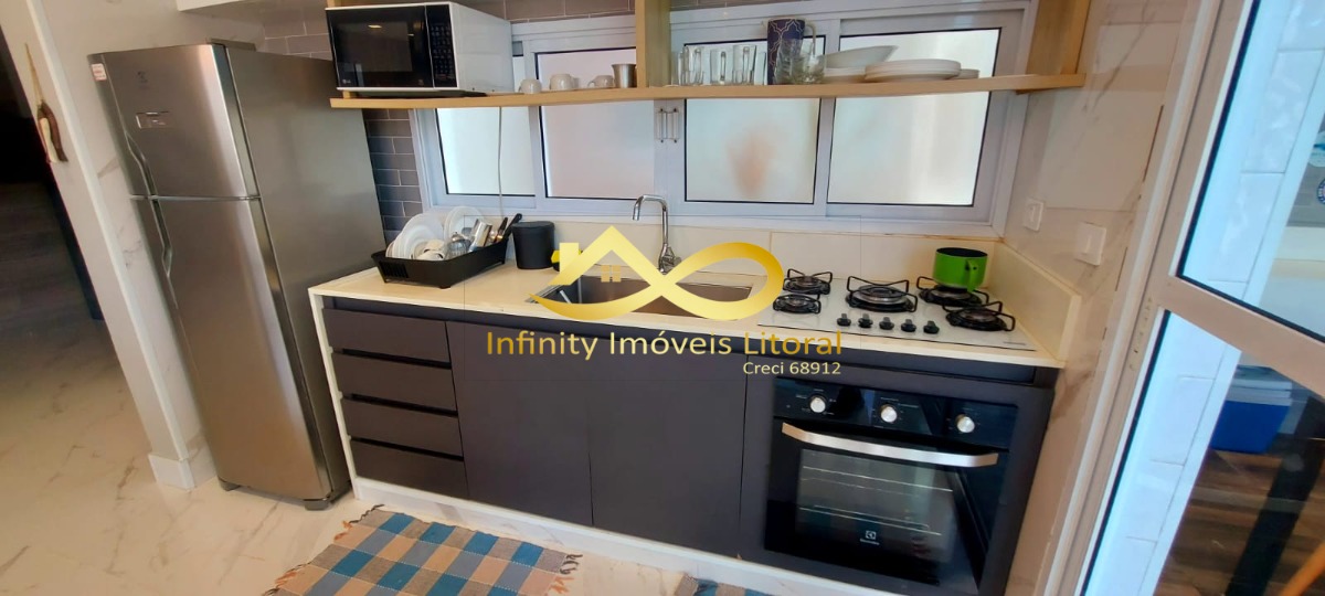 O imóvel é mobiliado e conta com armários de cozinha e embutidos, facilitando a organização.