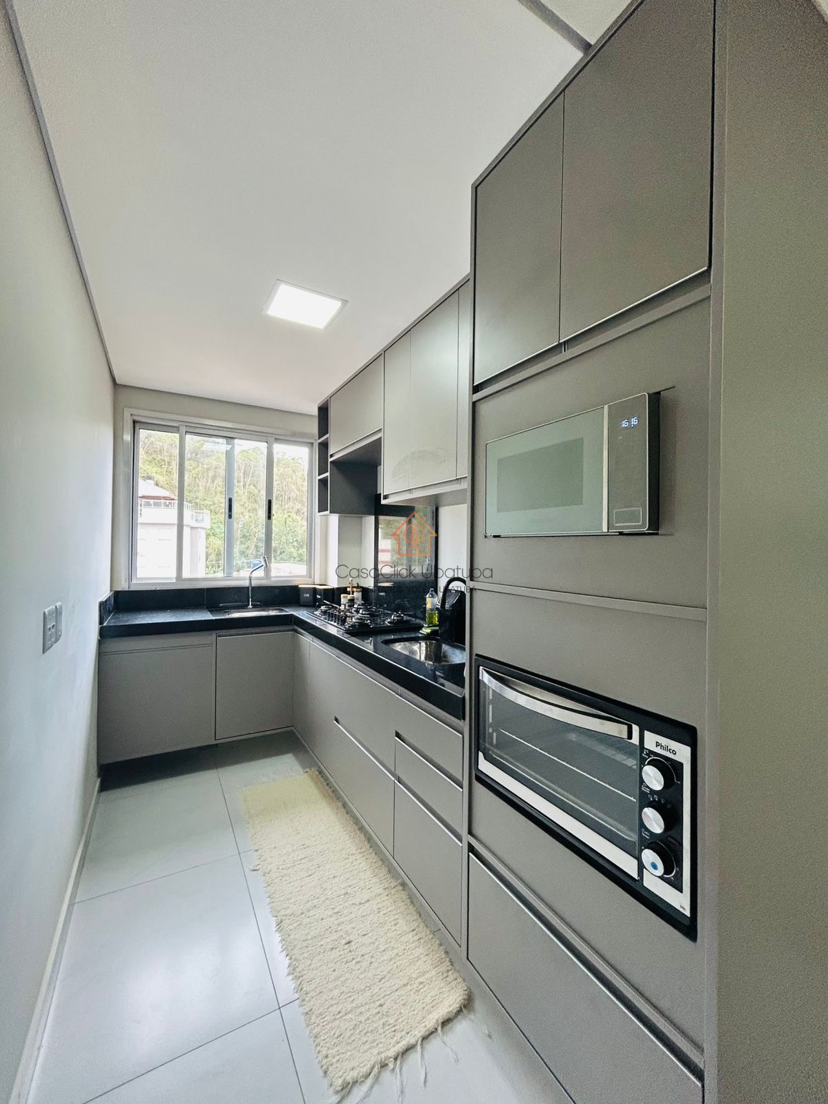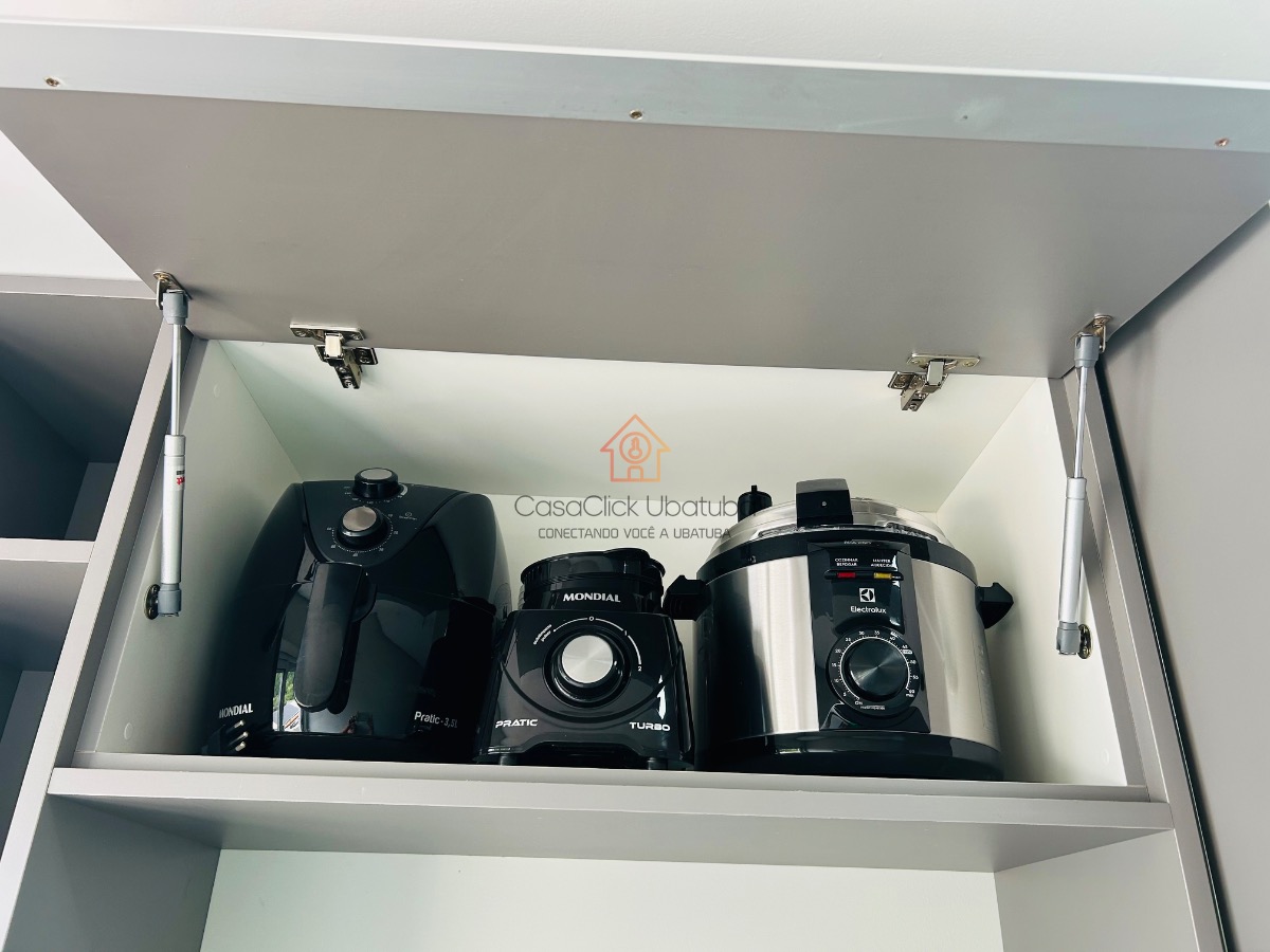 A cobertura é mobiliada e possui armário de cozinha, facilitando o dia a dia.
