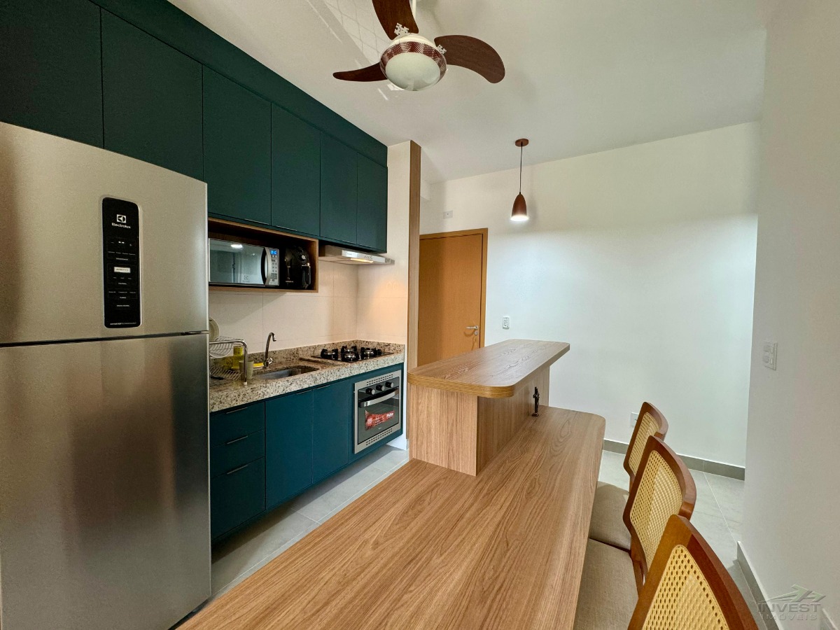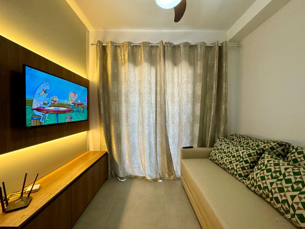 Apartamento todo mobiliado, no segundo andar, frente rua, em condomínio completo e ótima localização.