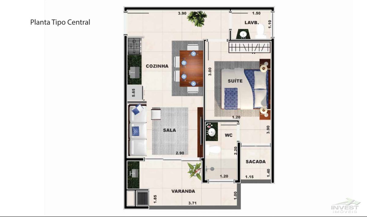 Quartos: 1 suíte com sacada