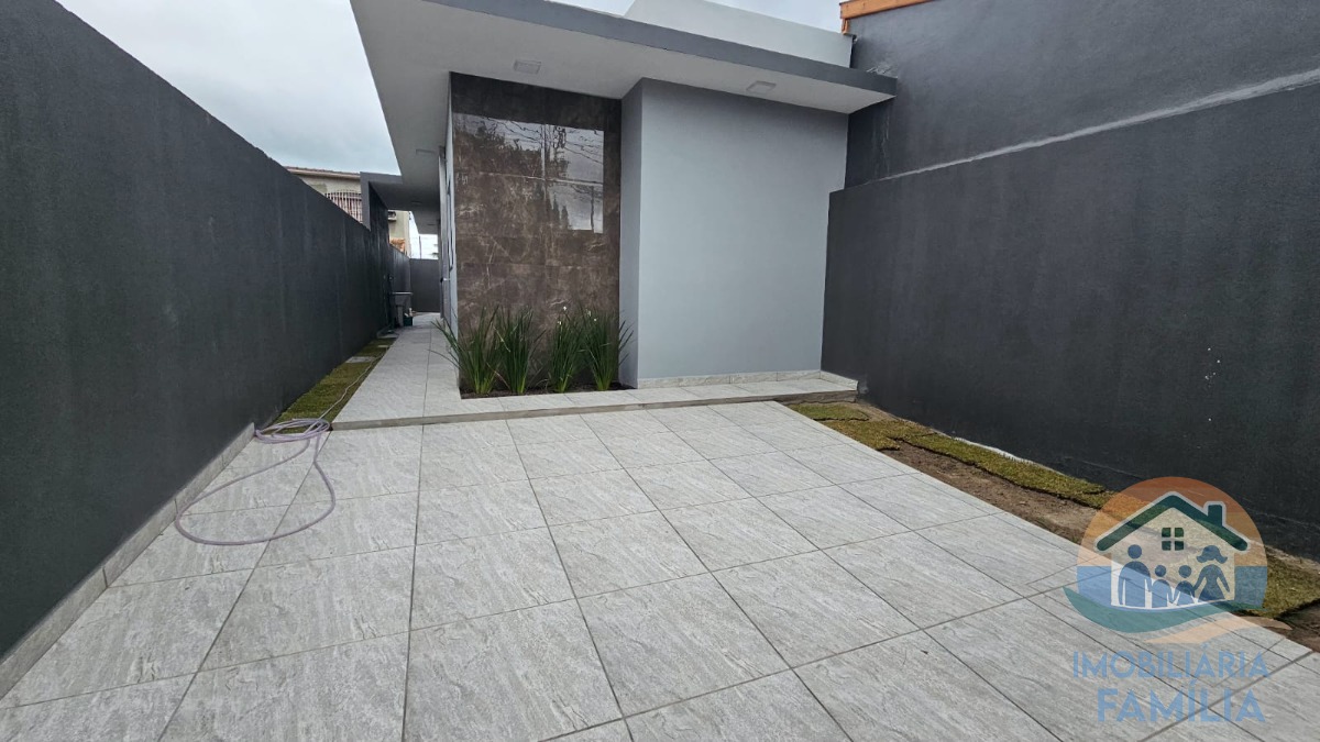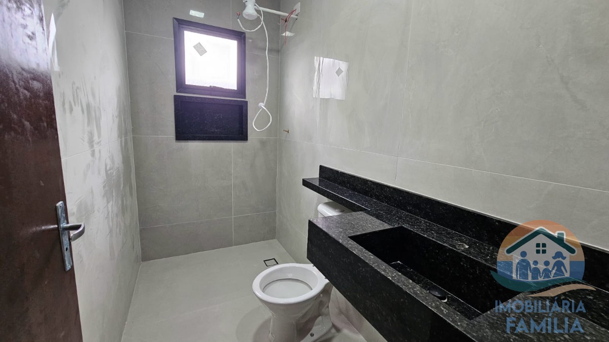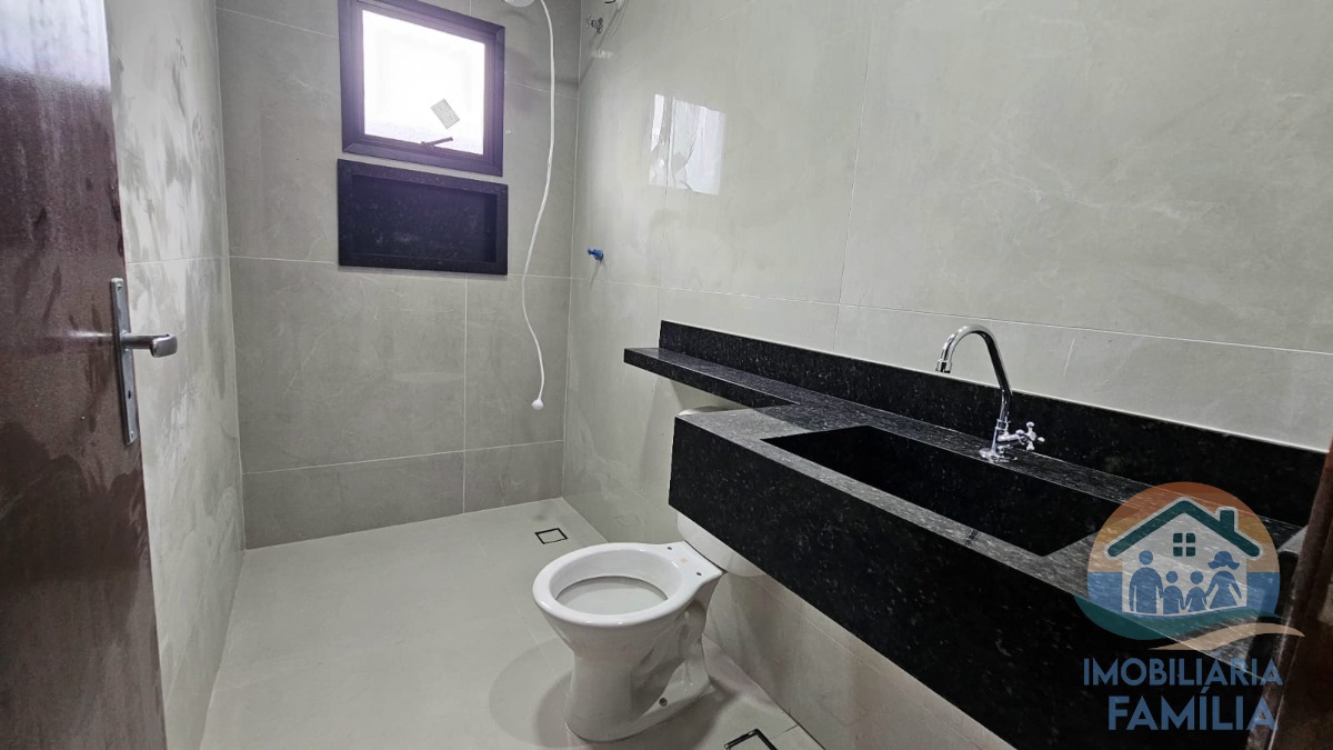 São dois dormitórios (1 suíte), sala ampla integrada a cozinha equipada com uma linda bancada em mármore, dois wc com louças e nichos, área de serviços, portão basculante em aço galvanizado com portão social interno, além de duas vagas de garagem.