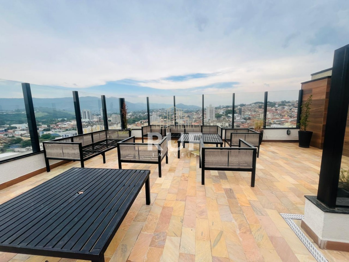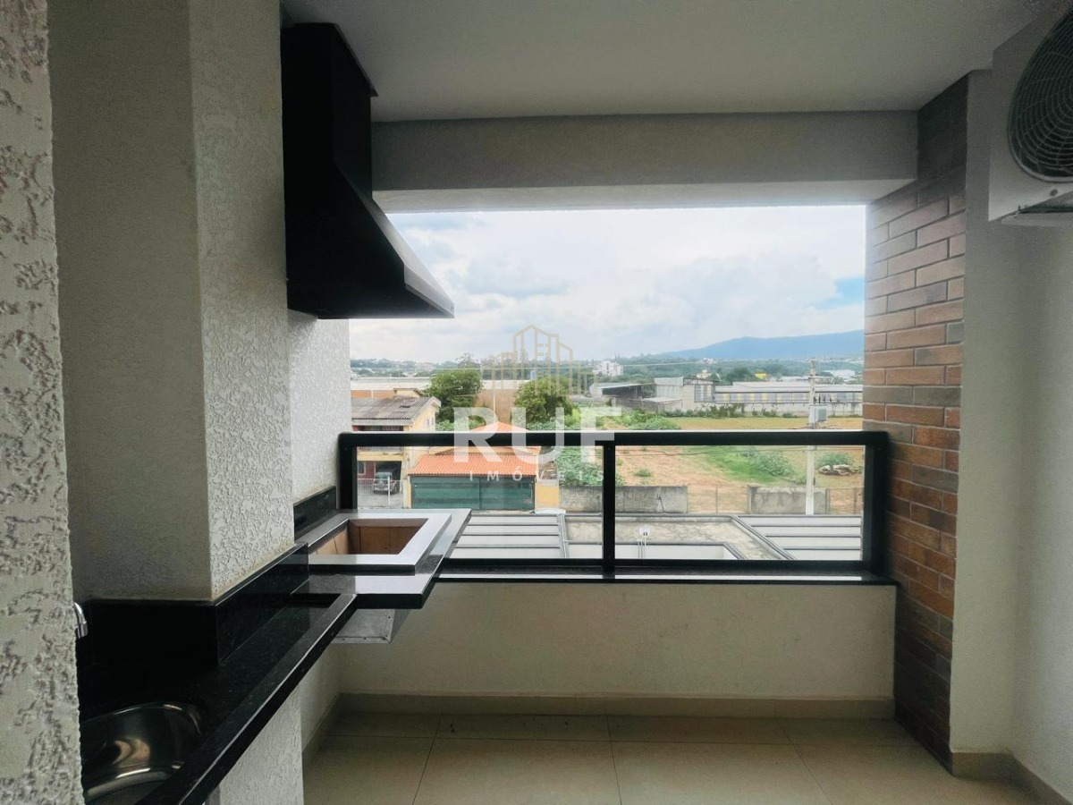 A sacada gourmet é perfeita para reunir amigos ou relaxar, com churrasqueira, pia com acabamento especial e vista panorâmica da cidade e da Pedra Grande.