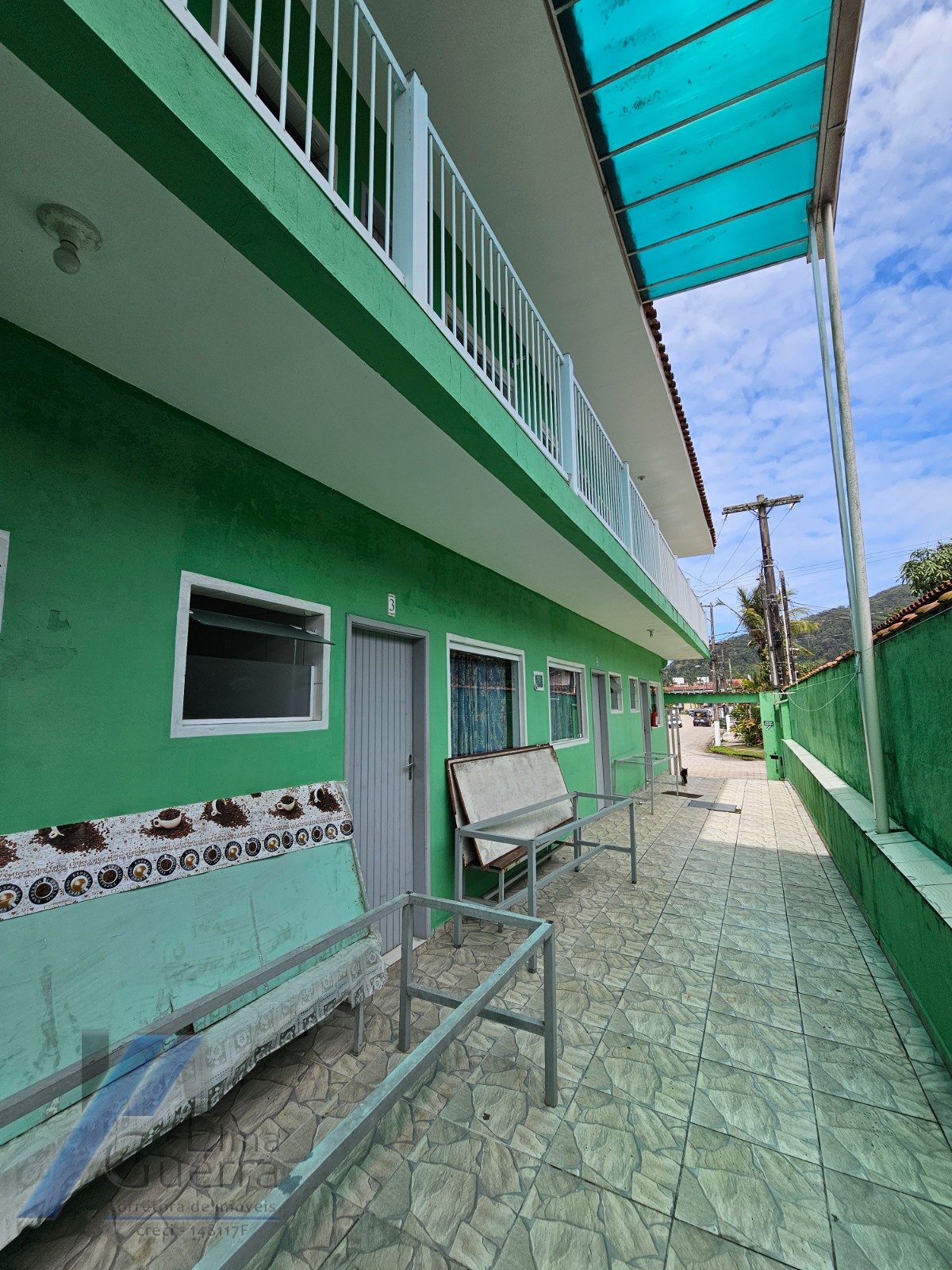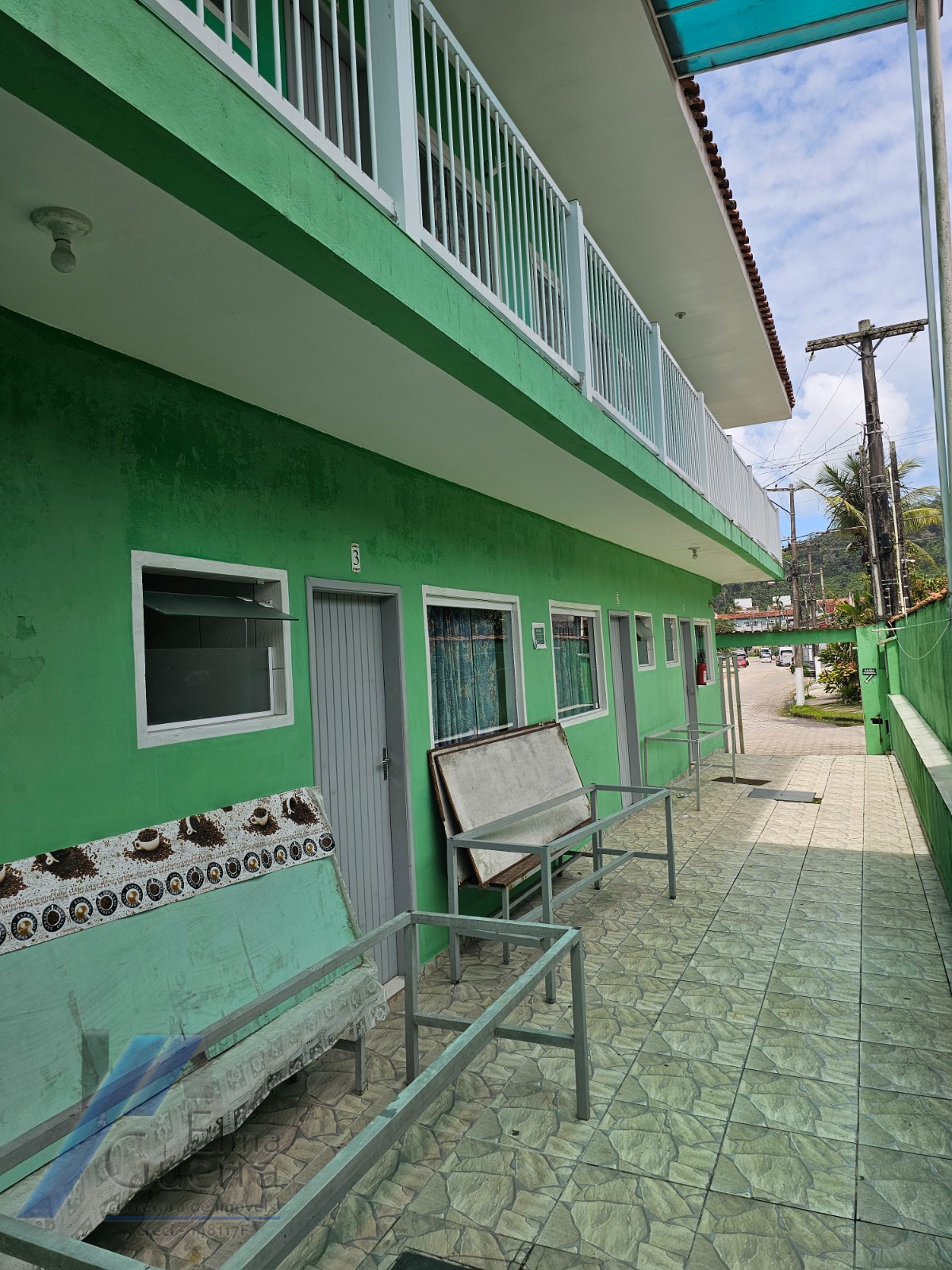 A pousada esta em funcionamento, com 24 suítes com ventilador, tvs e geladeira.