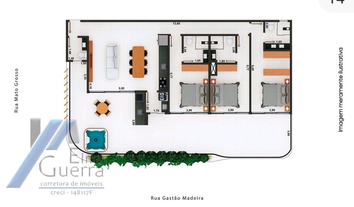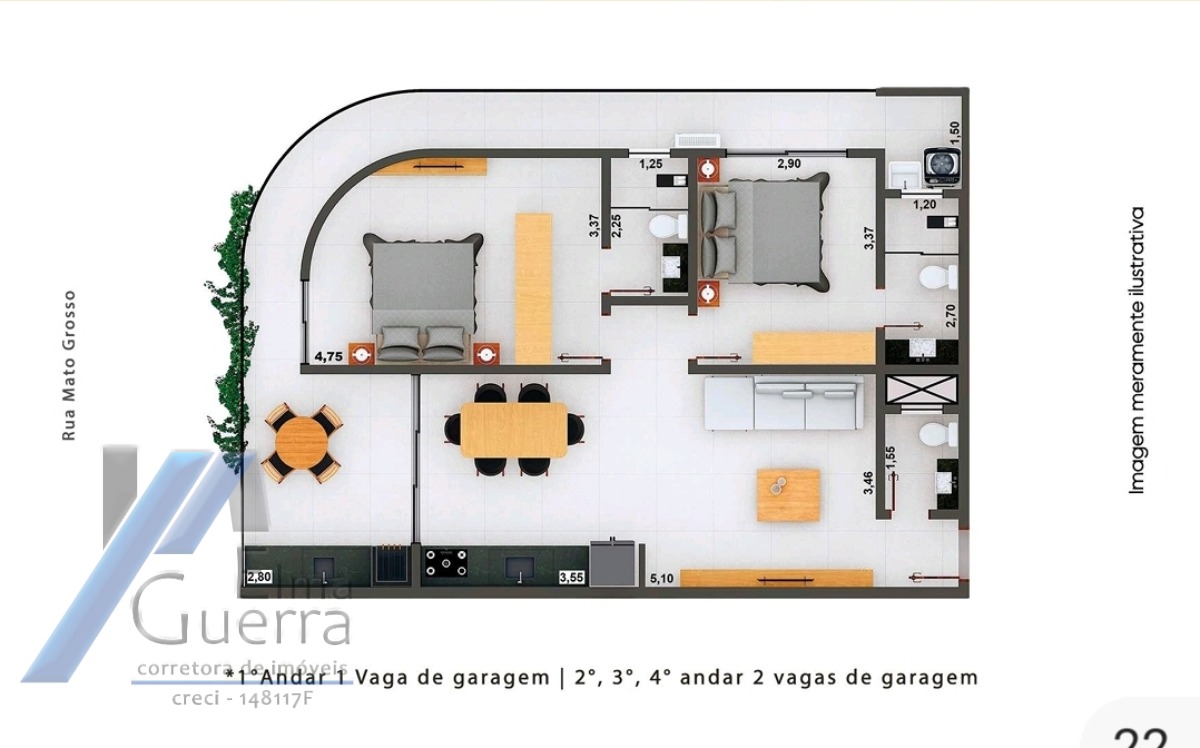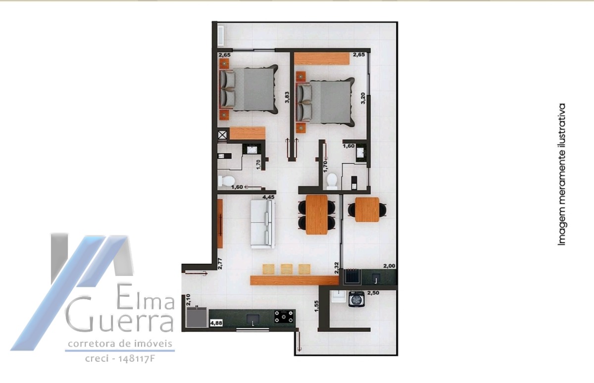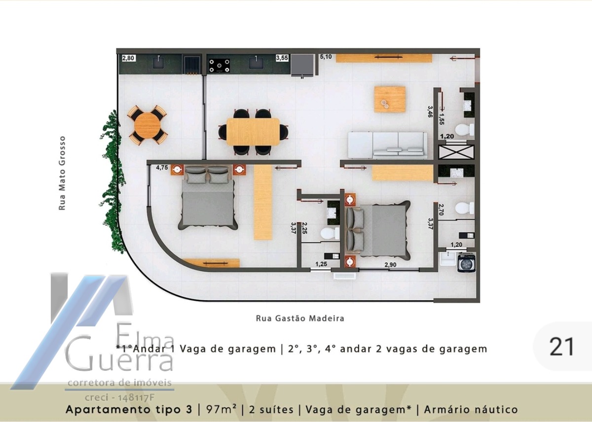 Apartamentos de 97,58m² de área útil e área total de 107,58 m2. Imóvel com 02 dormitórios sendo 01 suíte, sala, copa, cozinha, varanda gourmet, elevador, armário náutico, 02 vagas de garagem.