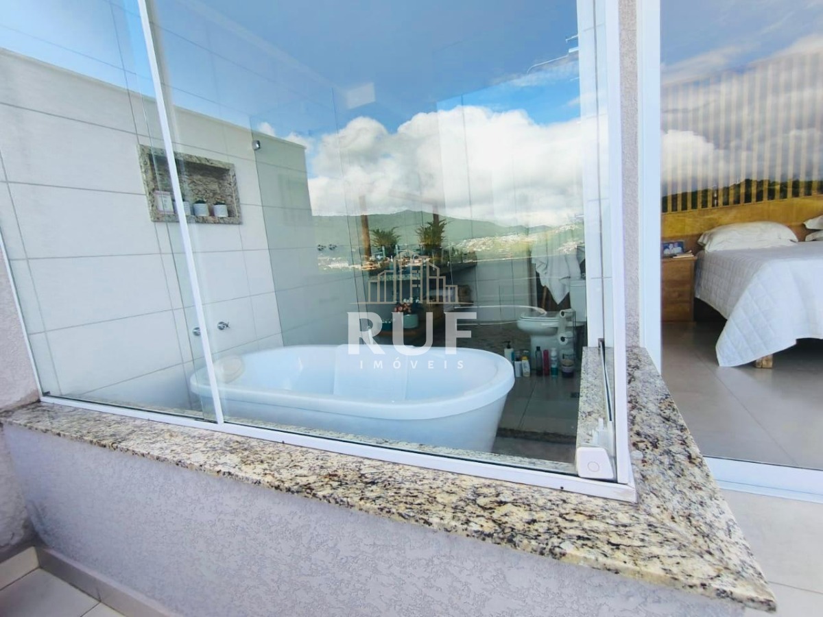 Localizada em uma vila exclusiva com apenas quatro unidades, esta residência oferece uma experiência única de moradia, tendo como cenário a deslumbrante Pedra Grande.