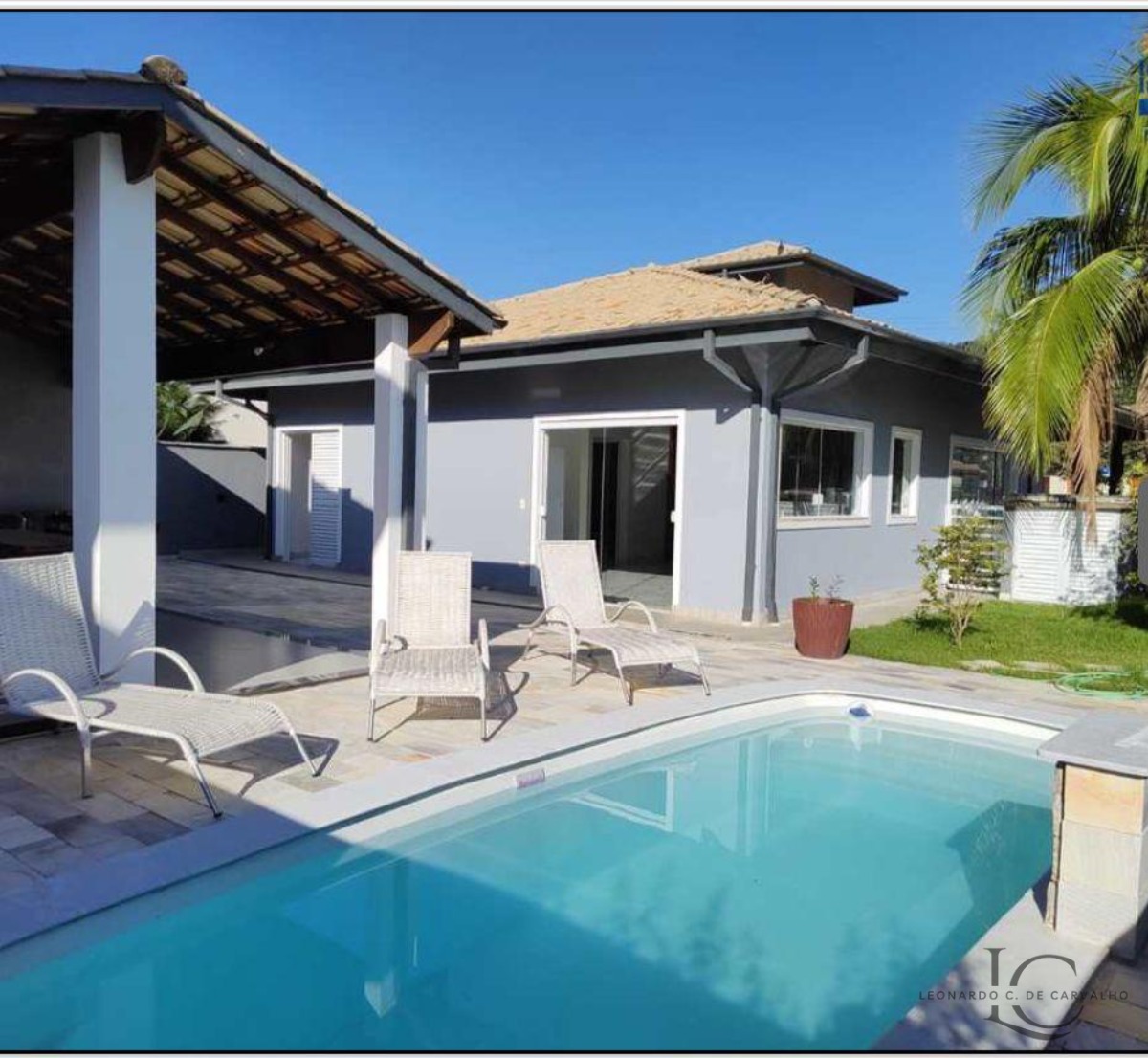Possui 4 dormitórios, sendo 3 suítes, 4 banheiros (sendo 3 das 3 suítes), 3 garagens.