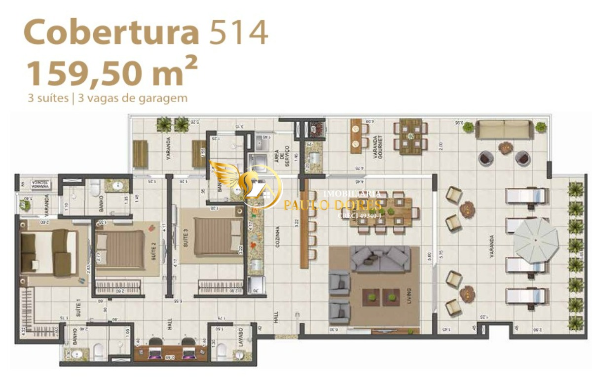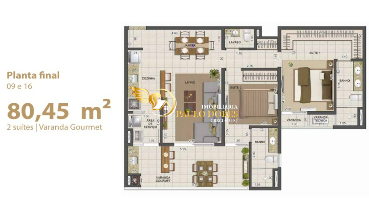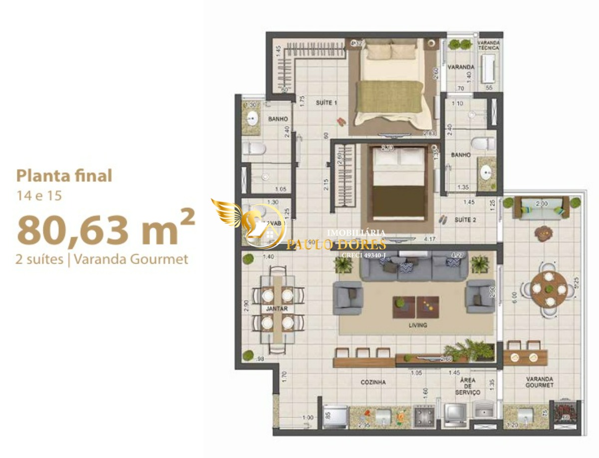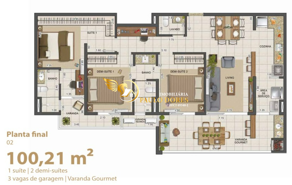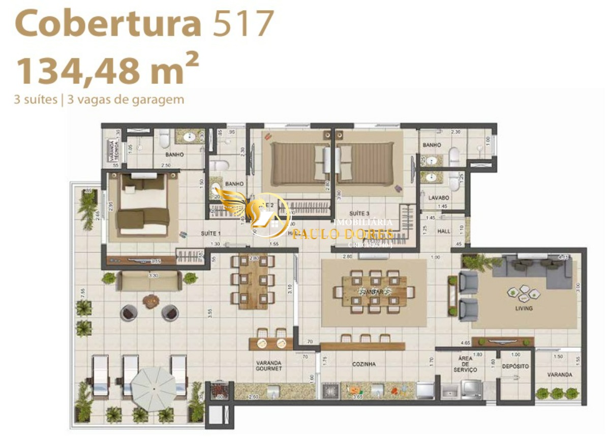 Plantas de 135,82 m² com 3 suítes, ampla varanda gourmet e 2 ou 3 vagas de garagem