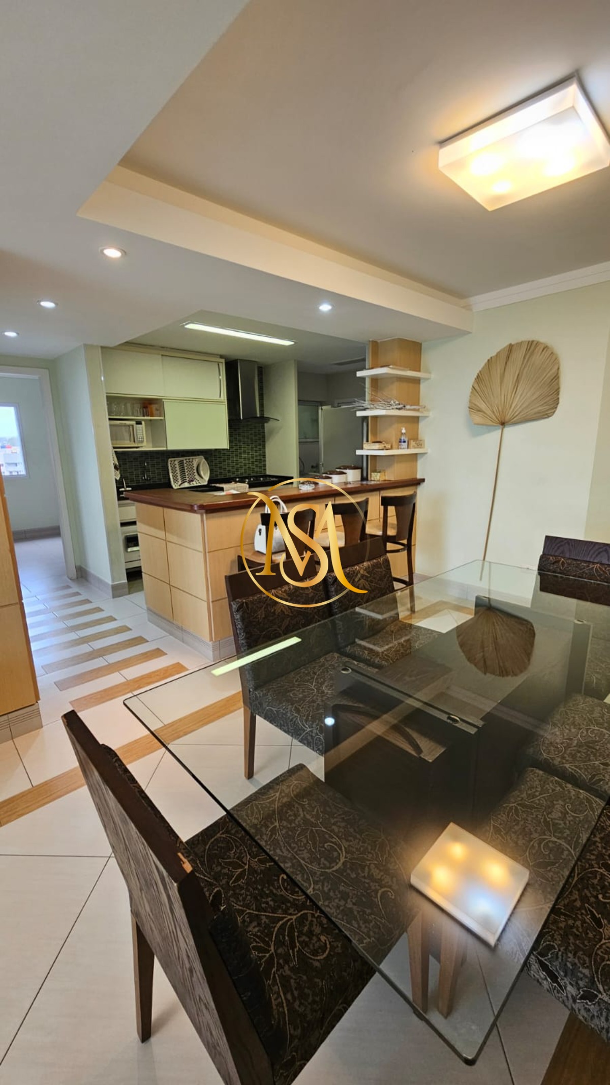 A área privativa é composta por uma sala de jantar bem iluminada, ideal para momentos em família.