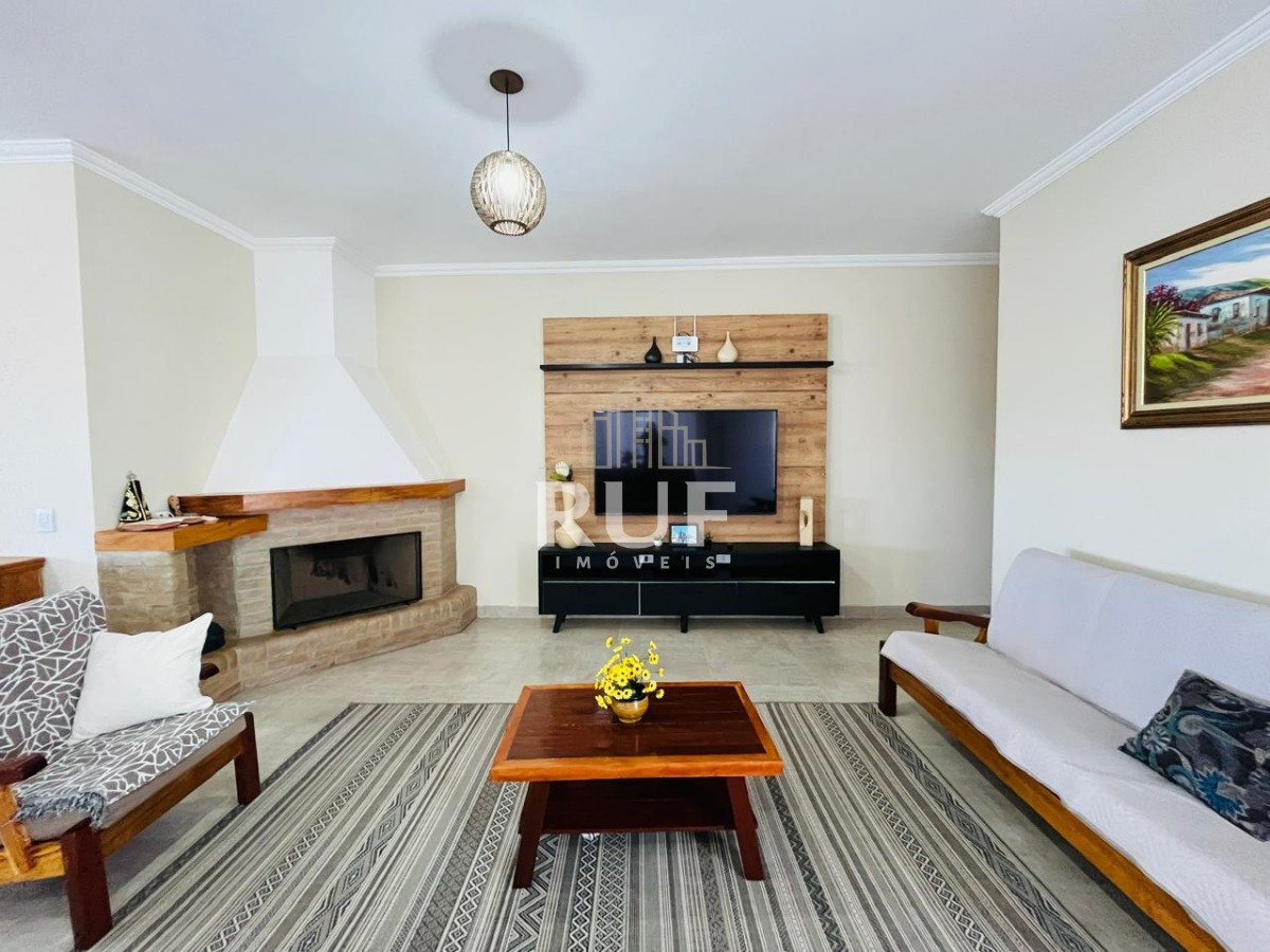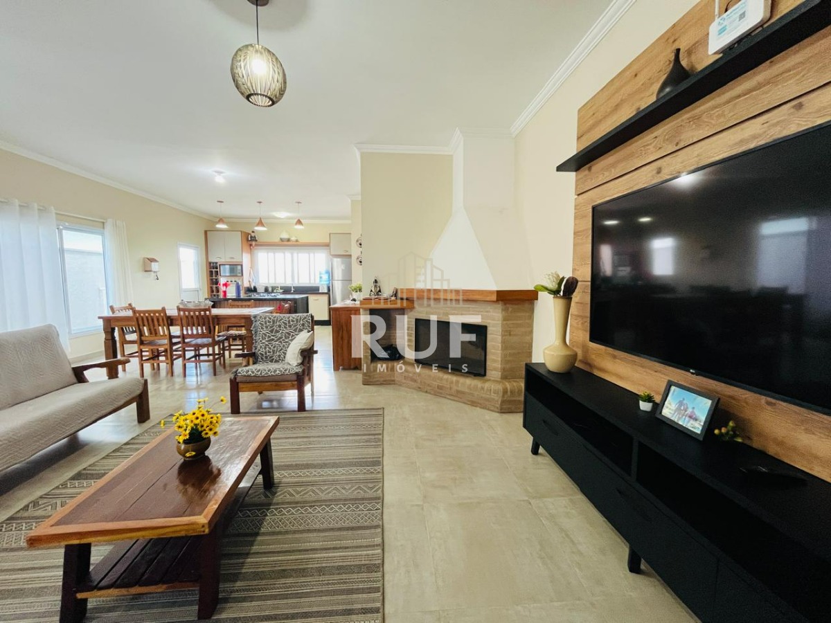 Sala ampla com 2 ambientes e lareira
