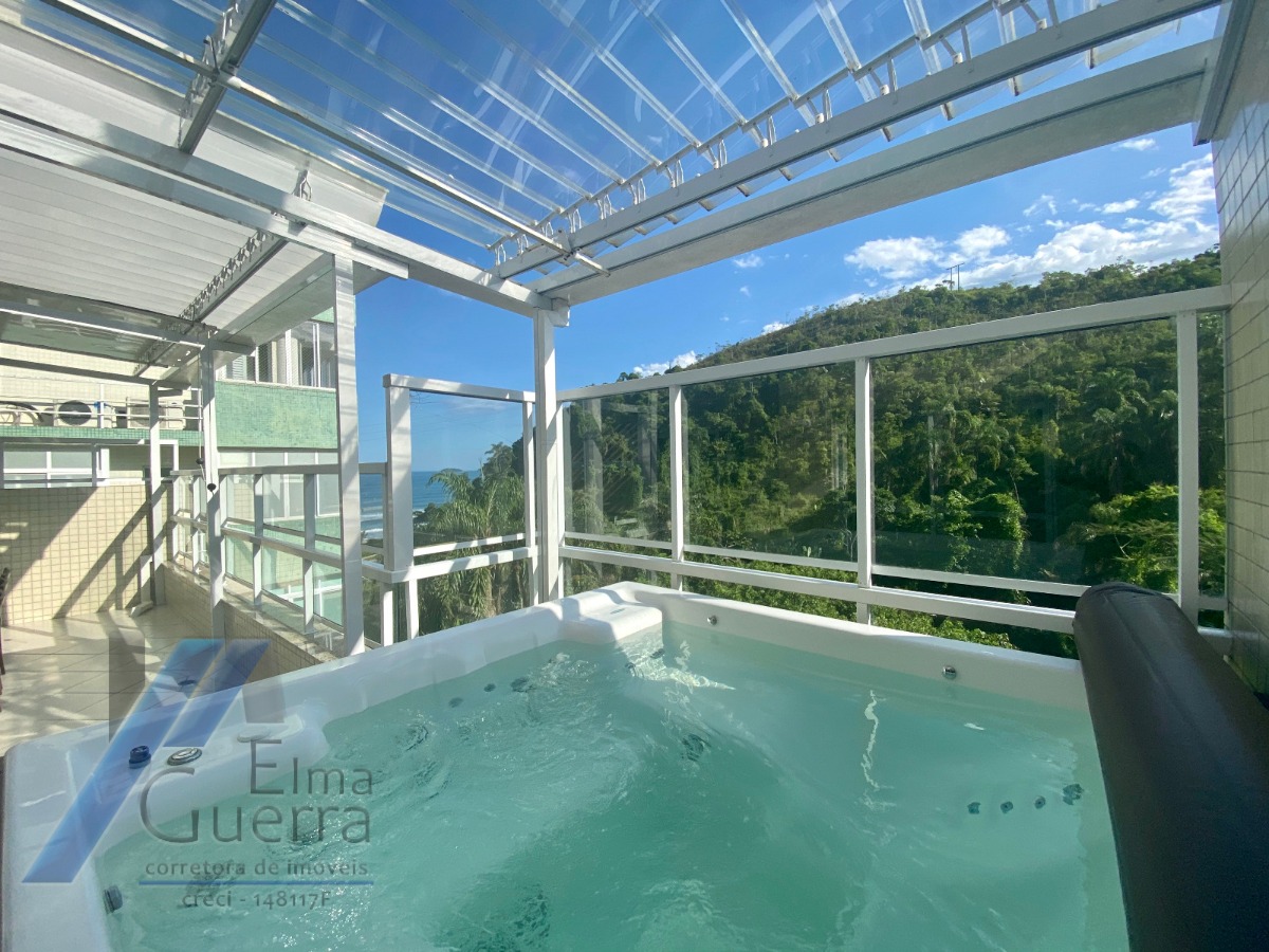 Ubatuba, Praia Grande - Apartamento cobertura mobiliada, composto por 03 suítes com sacada, ar condicionado, ventilador de teto, lavabo, sala com 02 ambientes, cozinha ampla, área de serviço, deposito, varanda gourmet, jacuzzi para 08 pessoas.