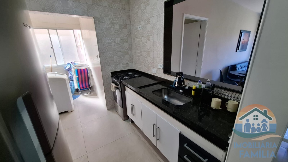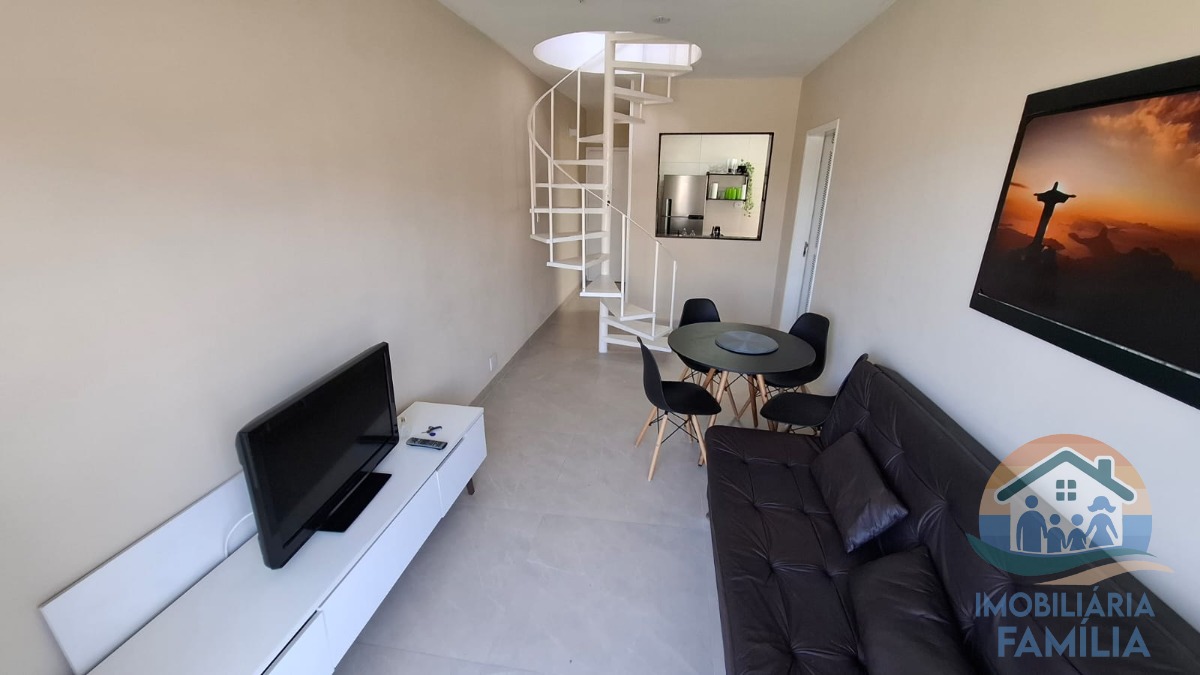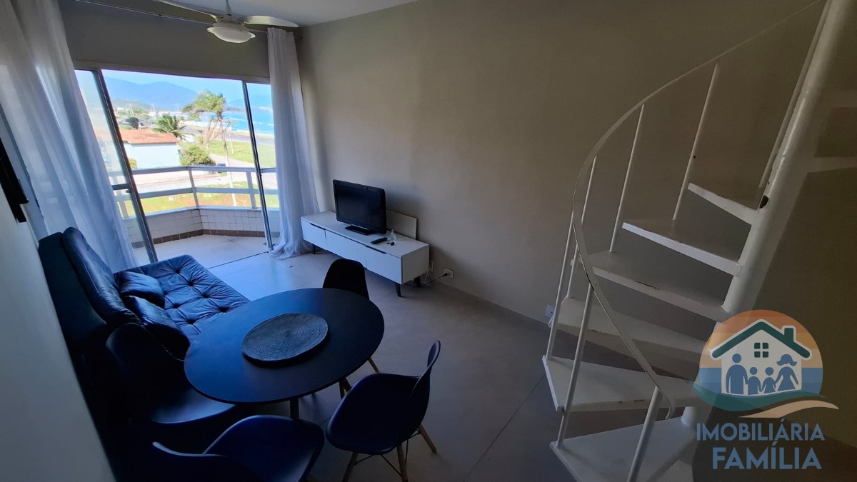 Sala de Jantar, sala de TV, cozinha com armários, Sacada com vista para o mar.
