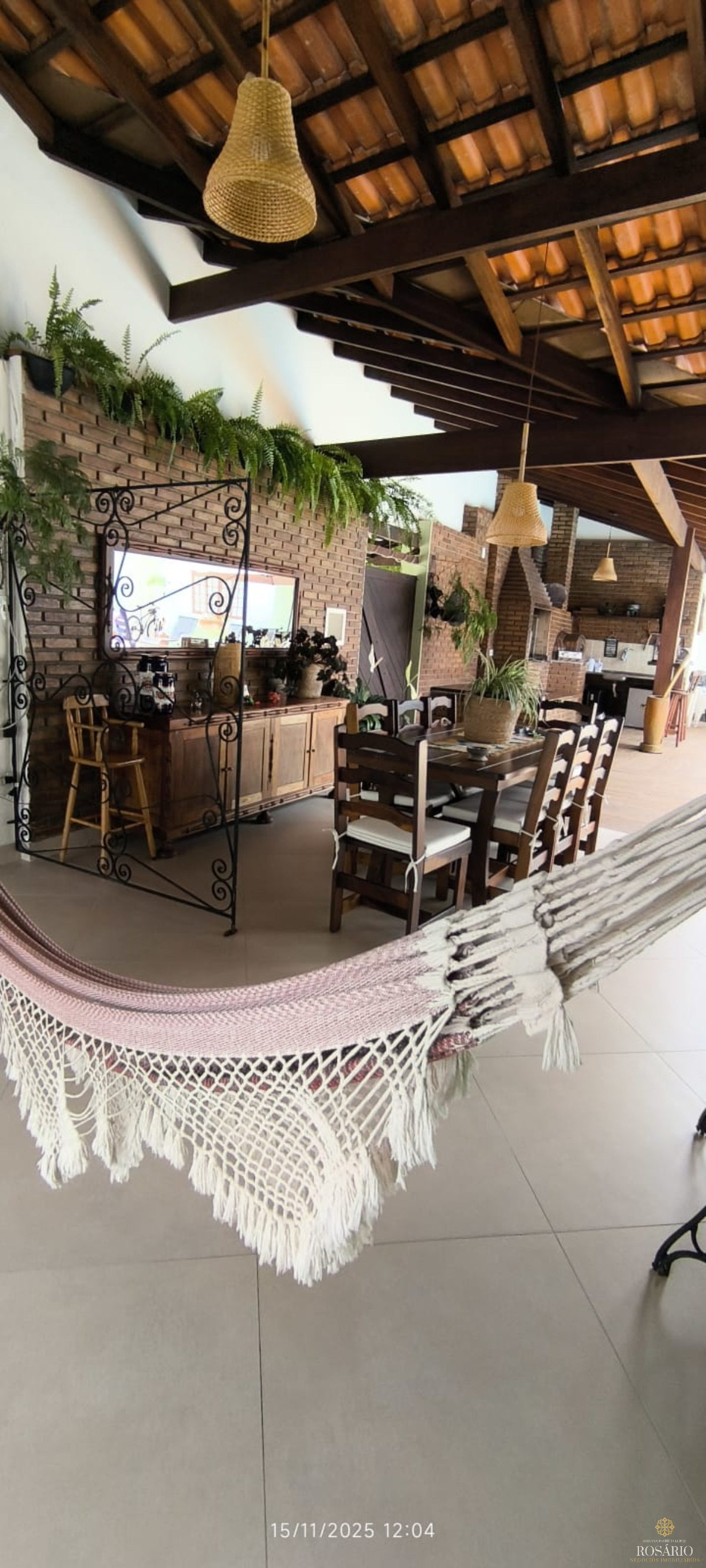 Área gourmet incrível: ambiente amplo, integrado, com acabamento rústico charmoso, espaço para refeições, rede de descanso e perfeita para reunir a família.