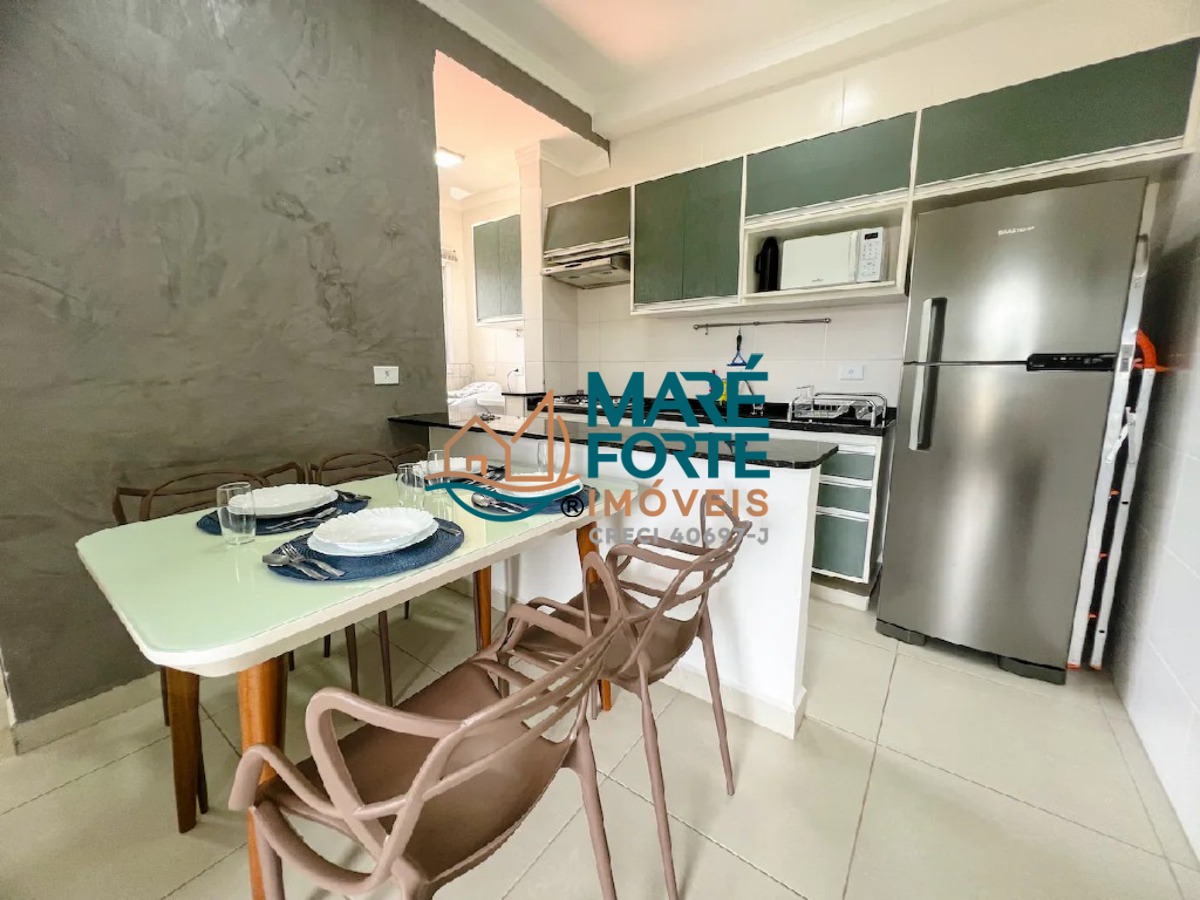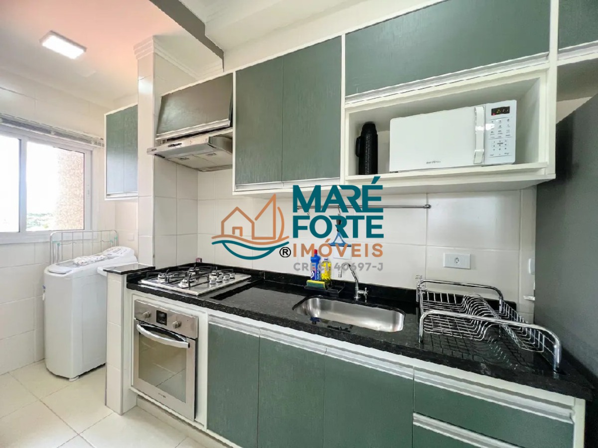 O imóvel é mobiliado e possui armários na cozinha e embutidos nos dormitórios, otimizando o espaço e oferecendo praticidade.