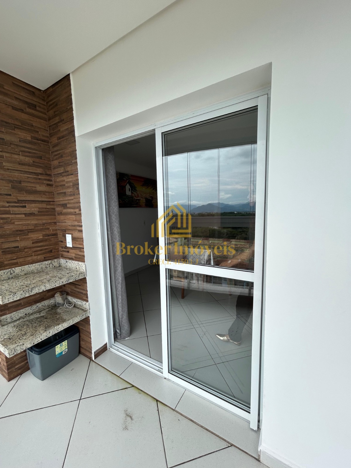 Varanda espaçosa com churrasqueira