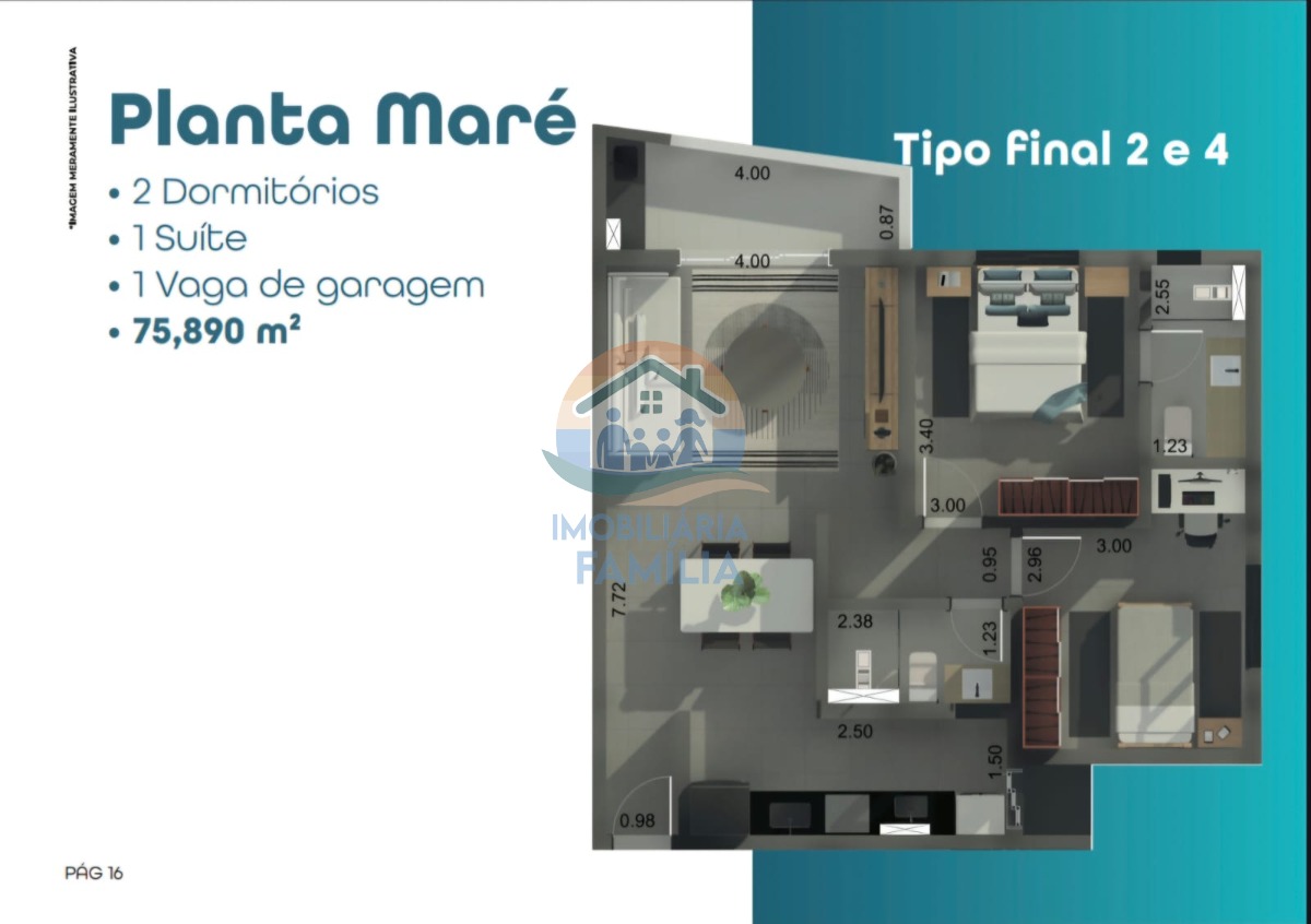 Planta bem distribuída em uma metragem de 75,89 M² com 2 dormitórios amplos (1suíte), sala de estar e jantar, cozinha, banheiro social, varanda gourmet com churrasqueira carvão, além de uma maravilhosa vista do mar ou da serra!