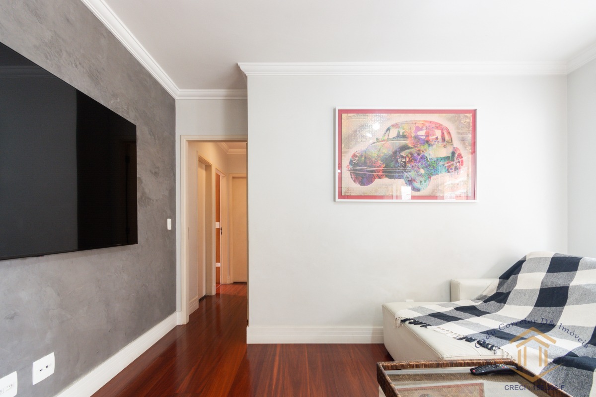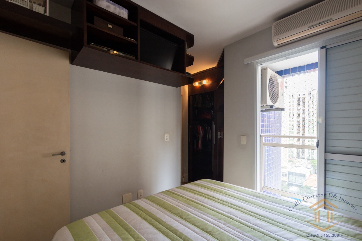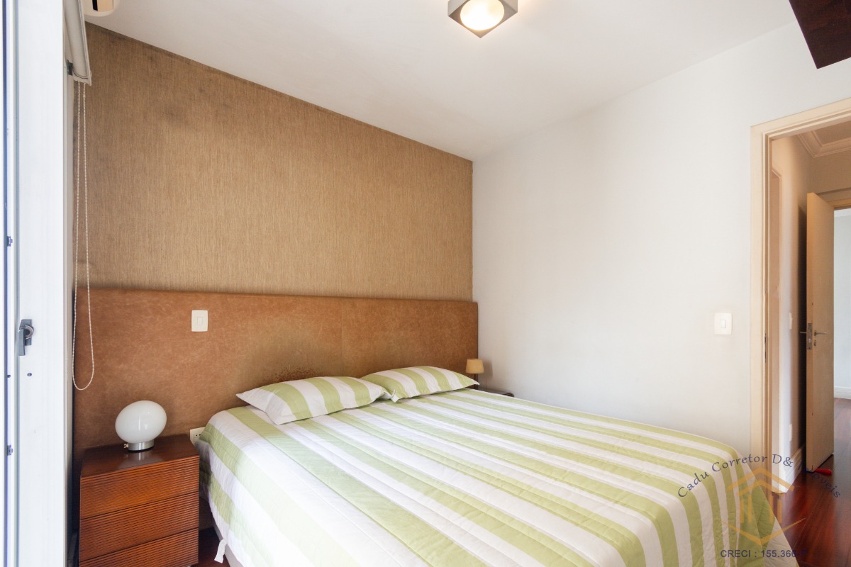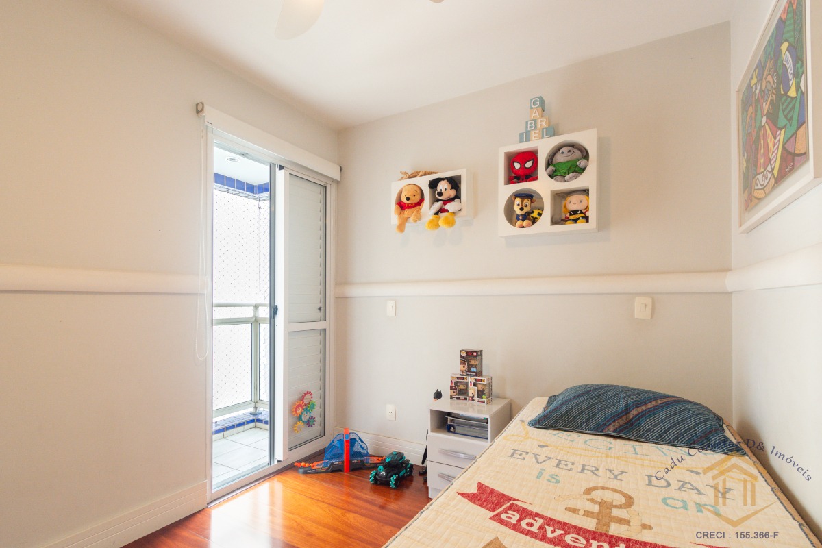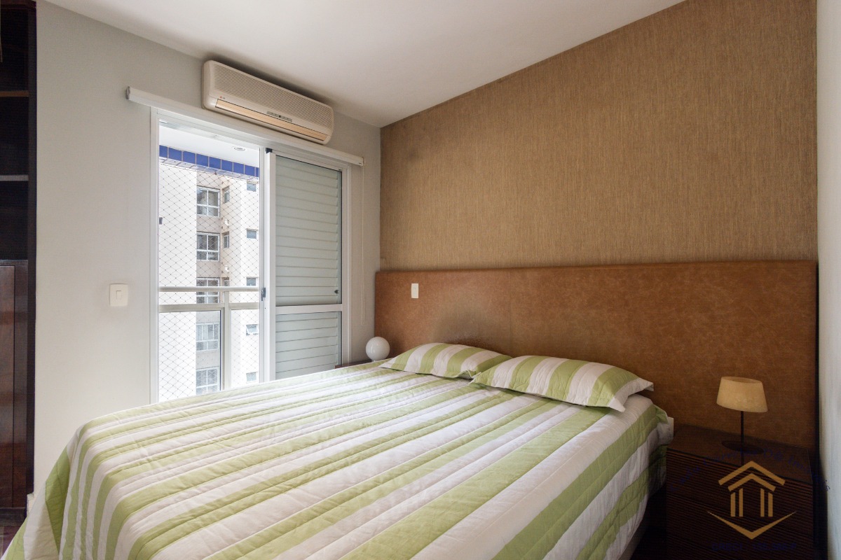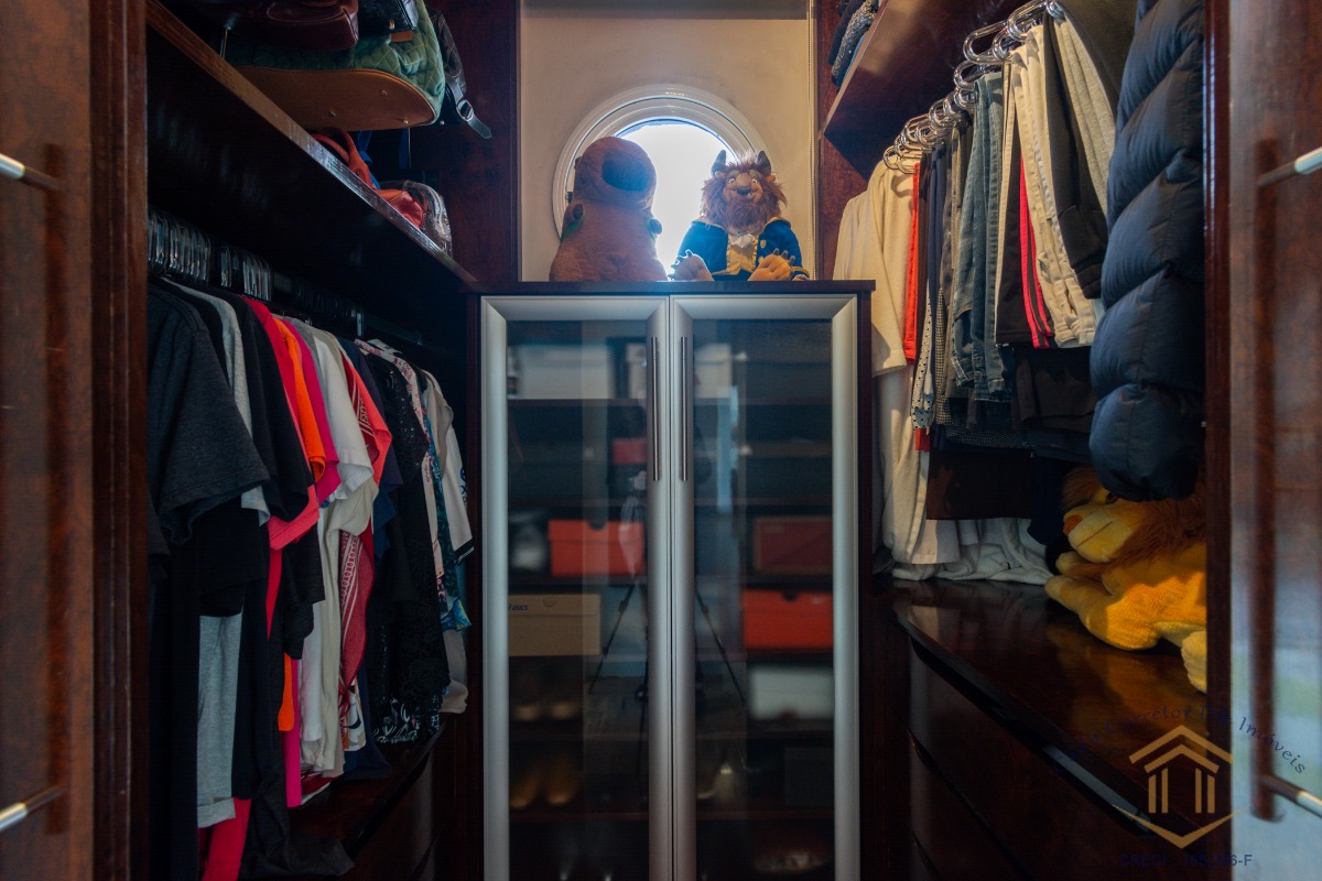 O imóvel conta com três dormitórios, sendo dois deles com varanda. A suíte se destaca pelo closet, varanda privativa e ar-condicionado.