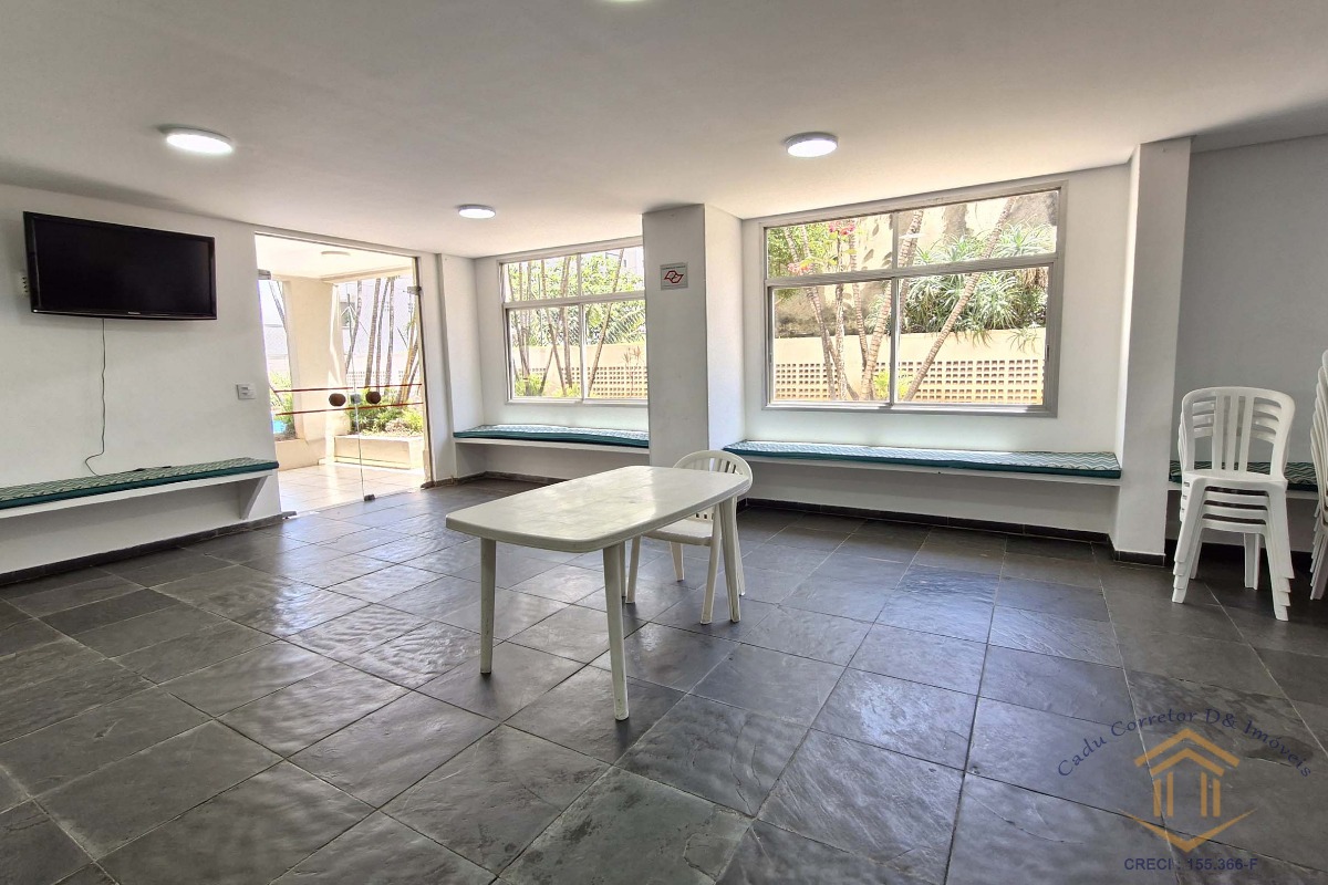 Condomínio com jardim, acessibilidade por rampa, portaria 24 horas, cadeira de rodas, mini mercado, jardins, grande área verde, piscina, quadra poliesportiva, salão de festas.