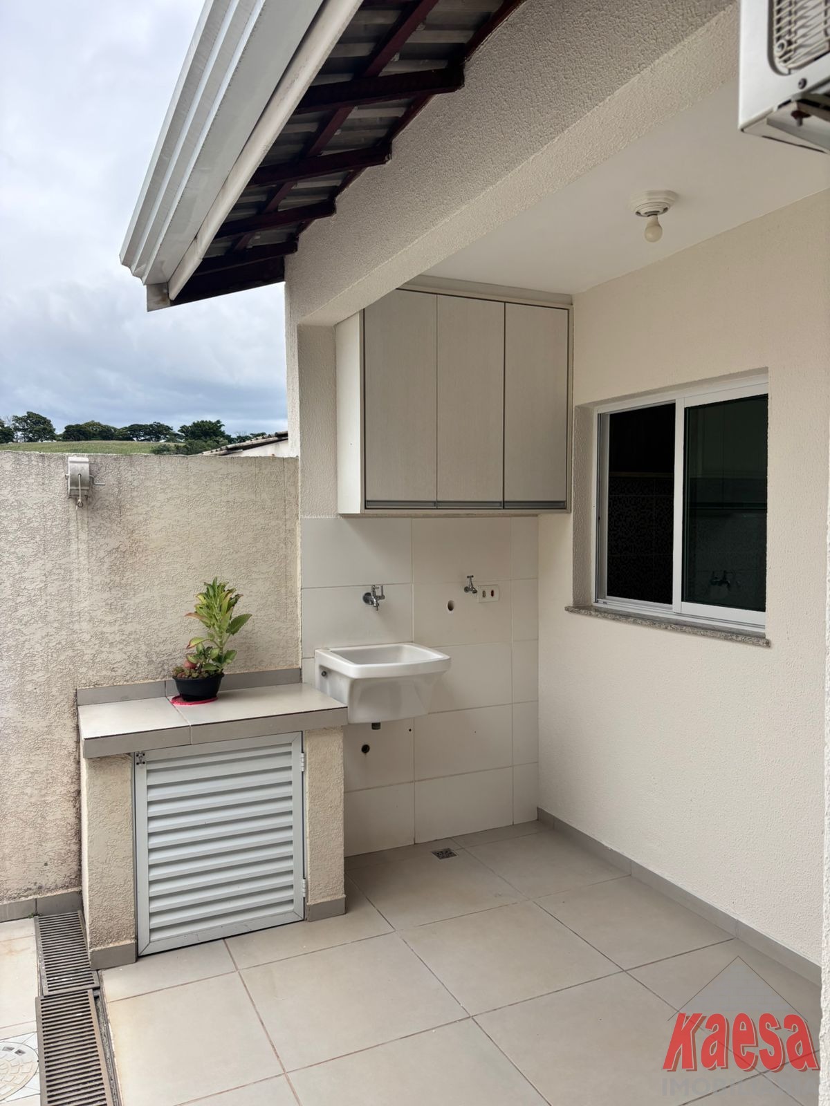 Lavanderia coberta com armário suspenso