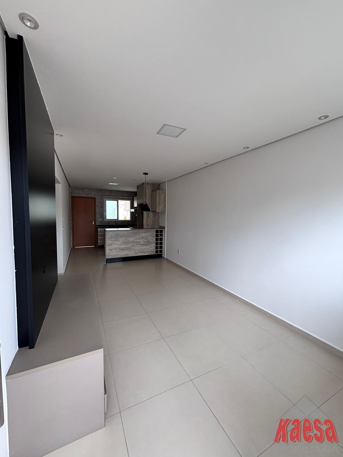 Sala com painel e gavetas