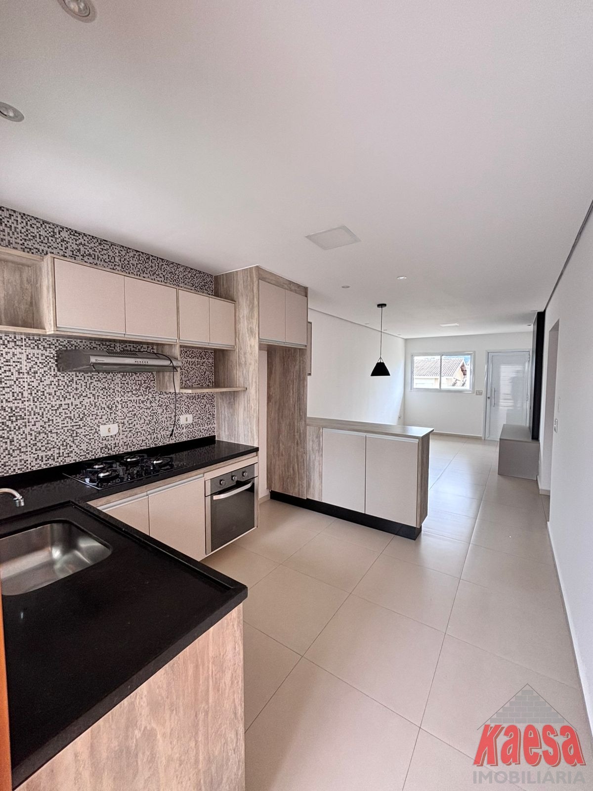 Cozinha completa com armário planejado, cooktop, forno embutido (à gás) e depurador