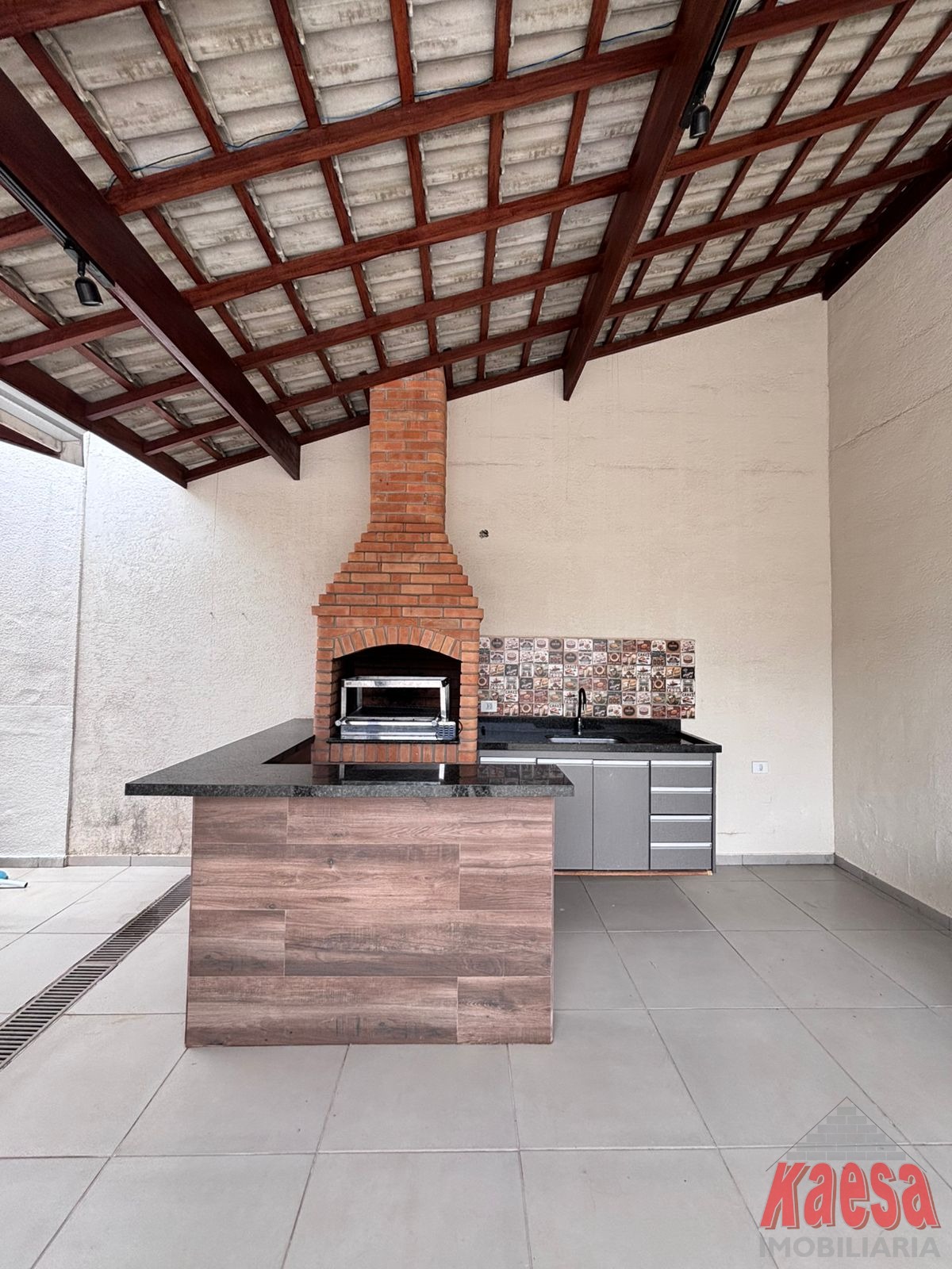 Churrasqueira coberta - com grill giratório e espetos