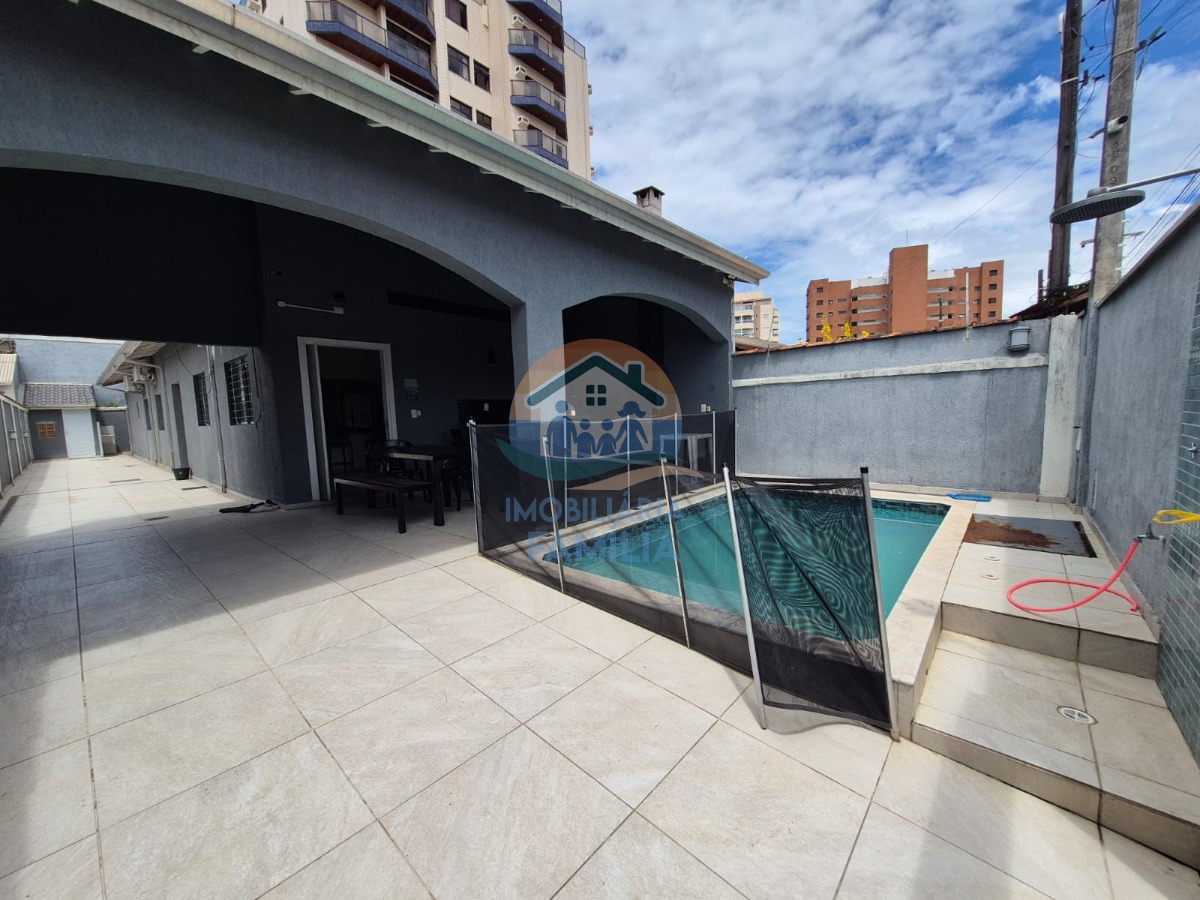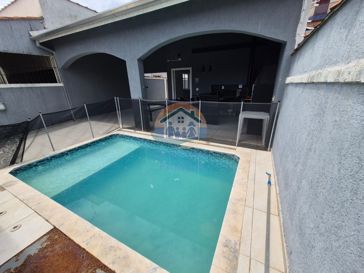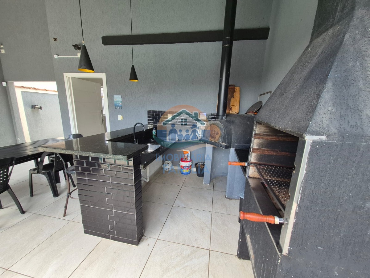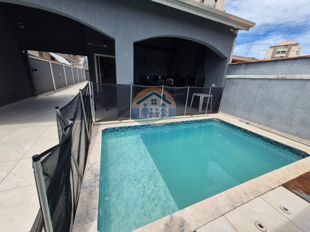 3 dormitórios (2 suítes), com ar-condicionado, sala de estar, cozinha ampla equipada e com armários planejados, amplo quintal para 5 vagas de garagem (1 vaga coberta) e área gourmet com churrasqueira à carvão, forno de pizza, piscina, 3wc e área de serviços.