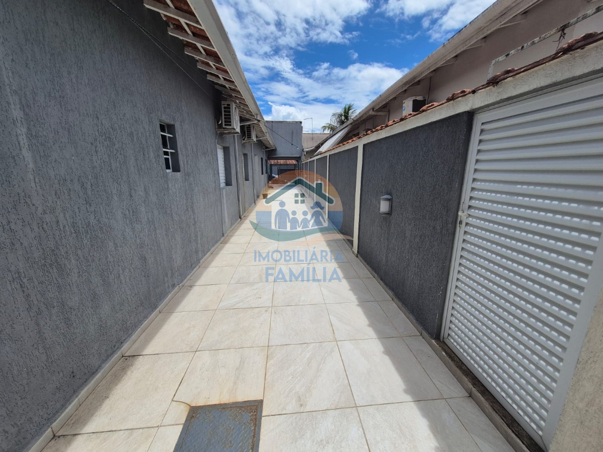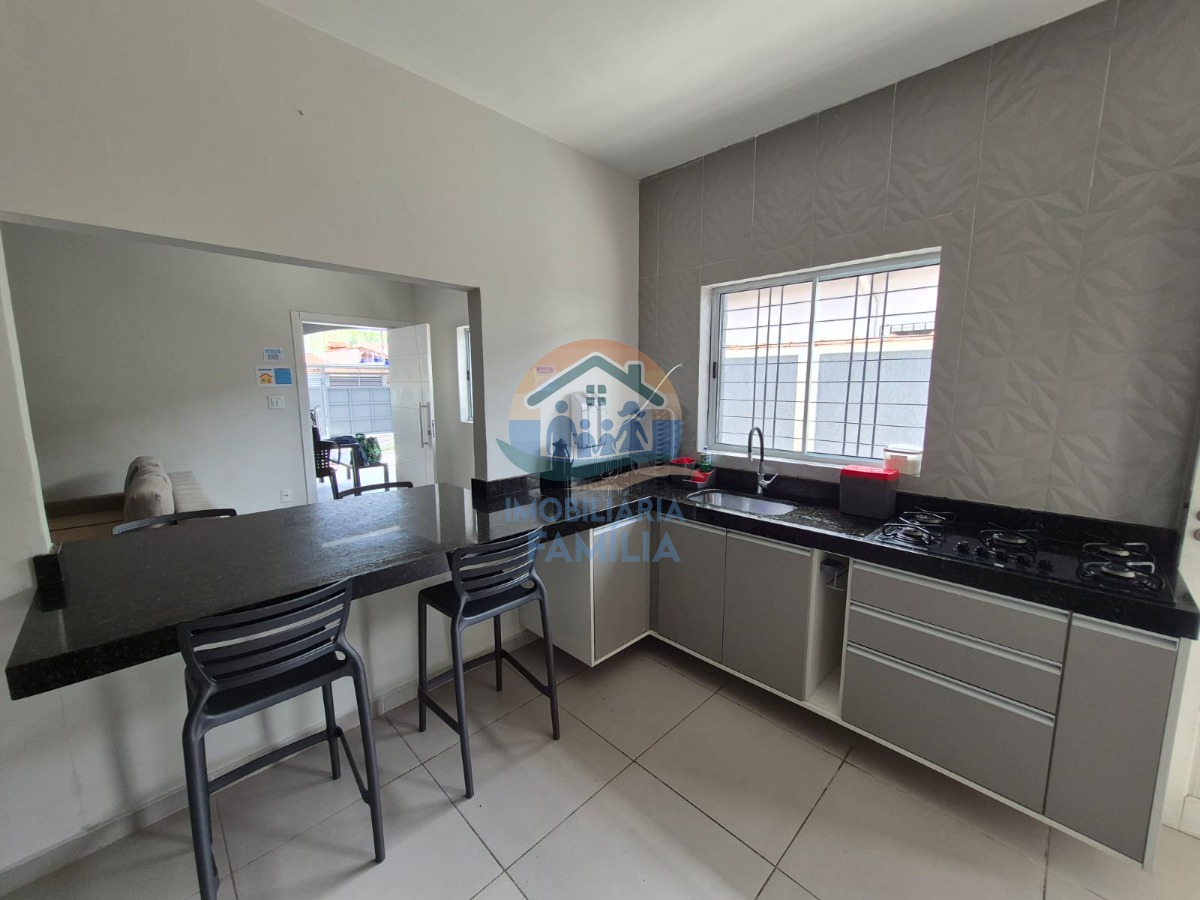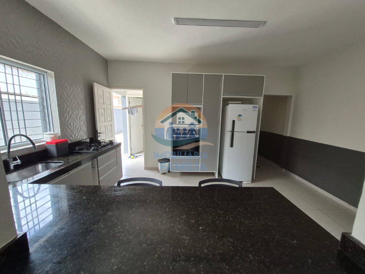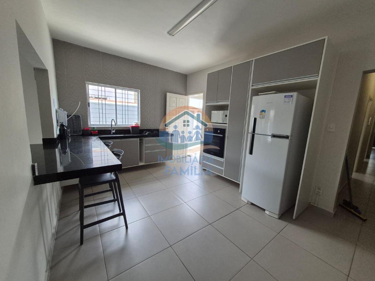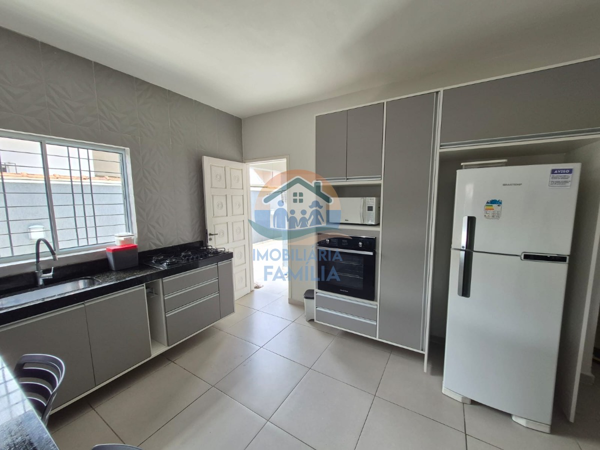 3 dormitórios (2 suítes), com ar-condicionado, sala de estar, cozinha ampla equipada e com armários planejados, amplo quintal para 5 vagas de garagem (1 vaga coberta) e área gourmet com churrasqueira à carvão, forno de pizza, piscina, 3wc e área de serviços.