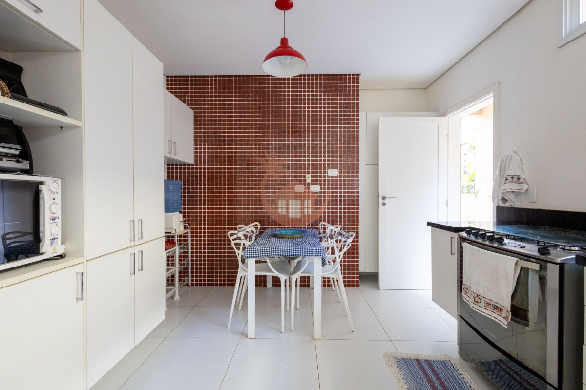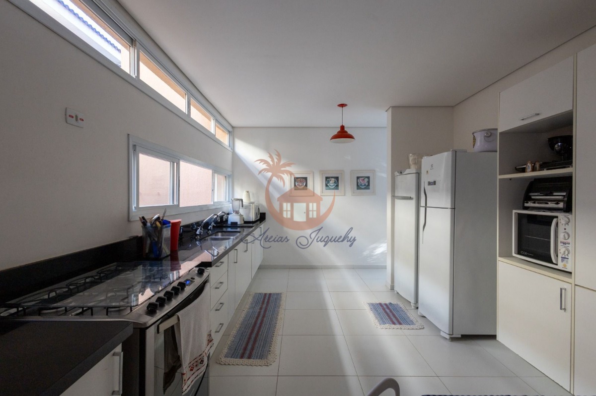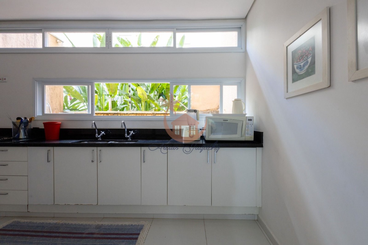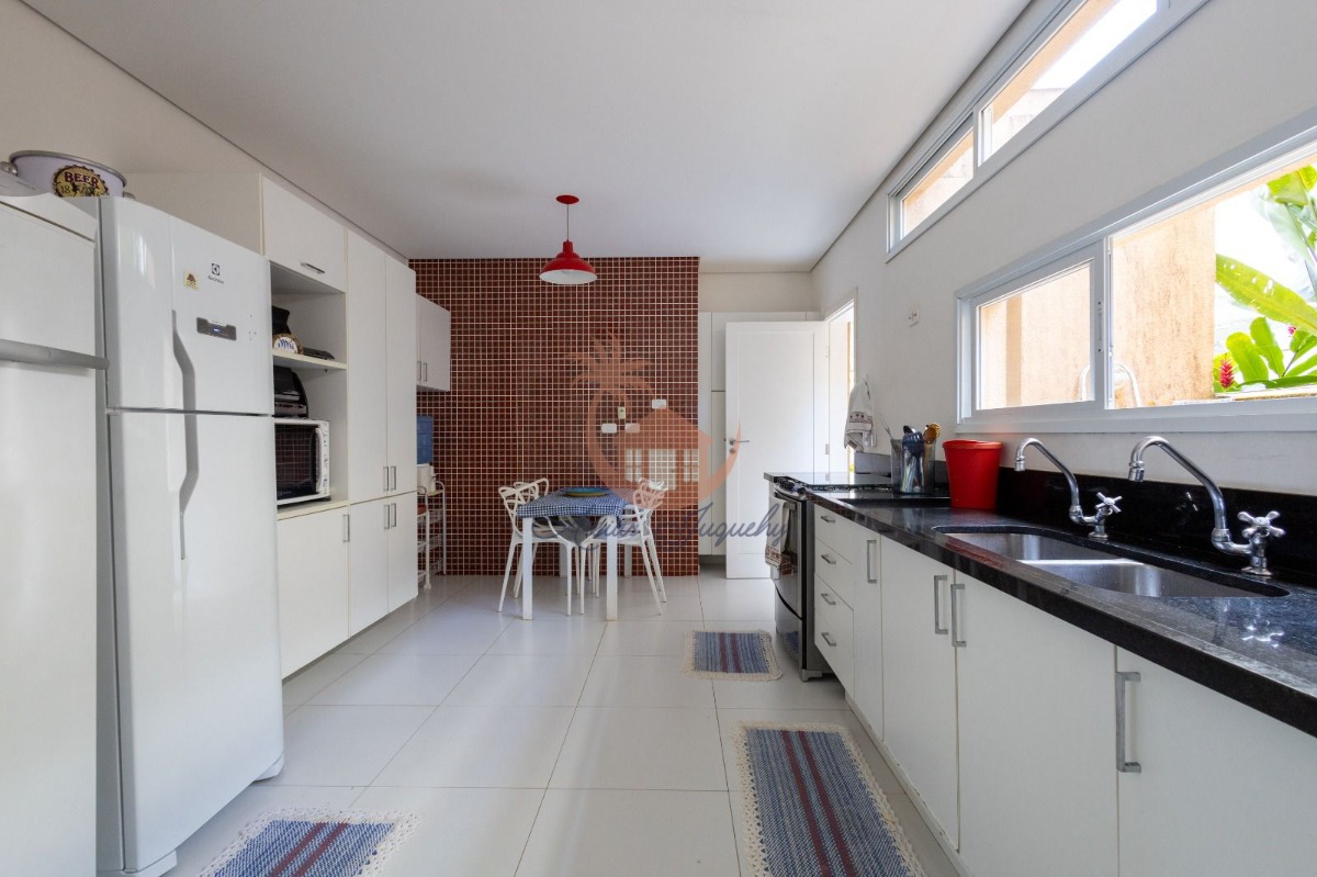 A cozinha é equipada com armários. Possui churrasqueira, ideal para confraternizações.