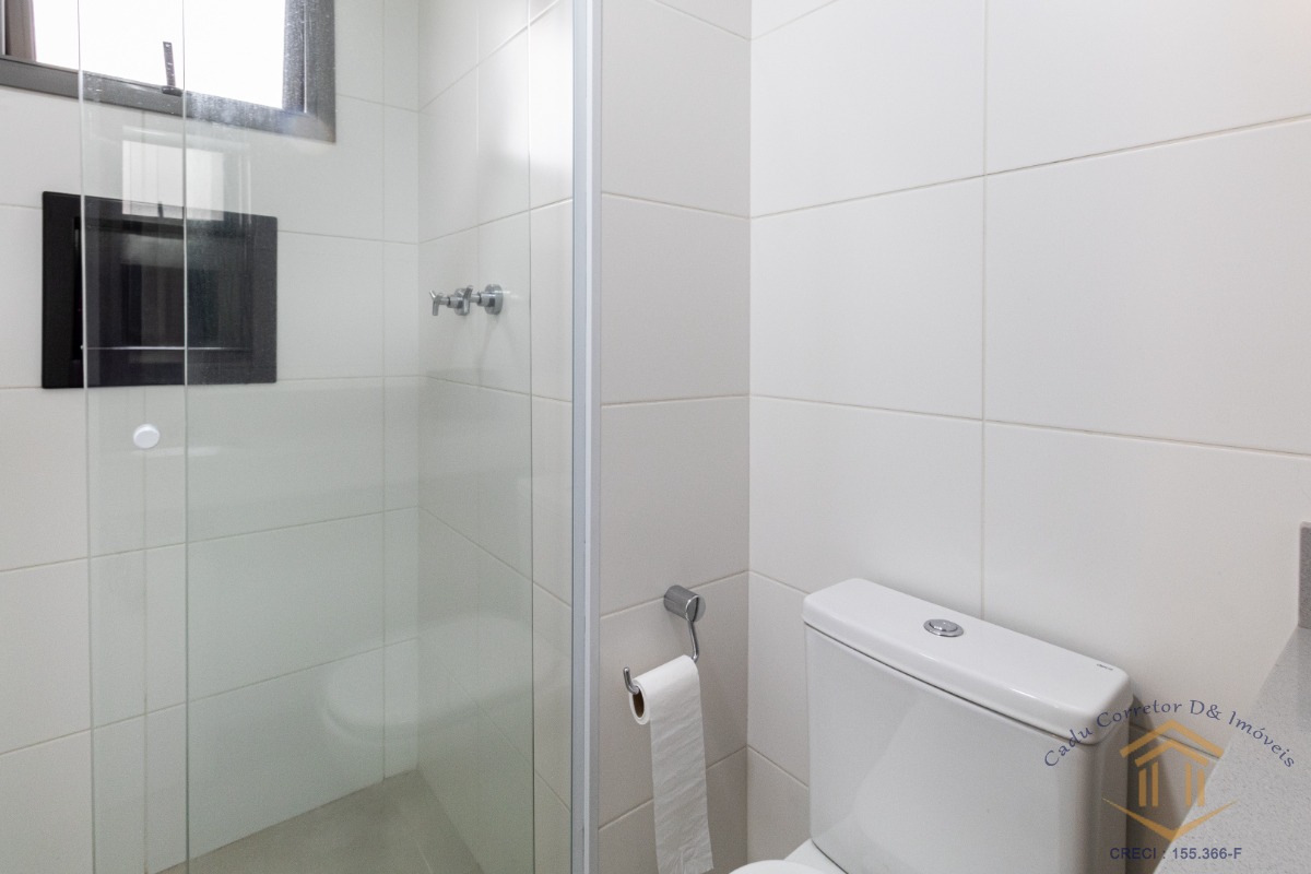 suítes, a suíte master conta com uma agradável varanda privativa. O living para dois ambientes é integrado à cozinha e à