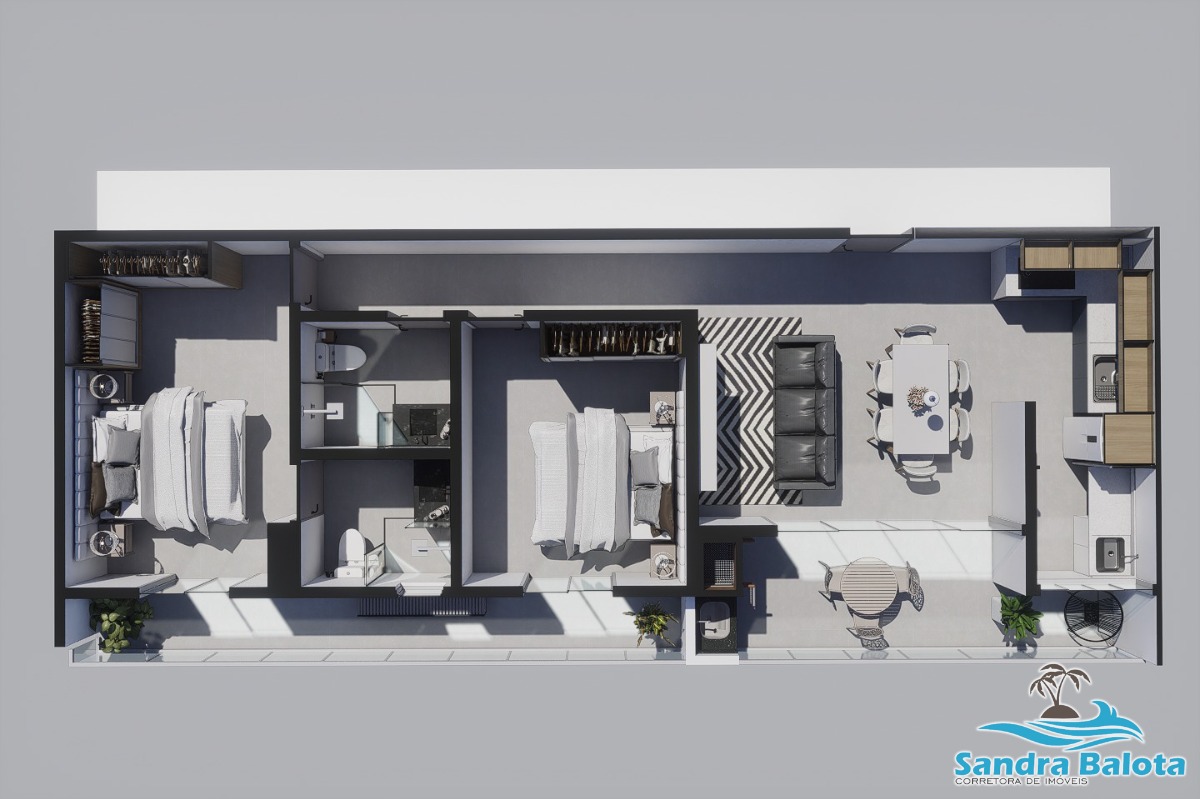 Possui 2 dormitórios sendo 1 suíte, 2 banheiros (sendo 1 da suíte), 1 garagem.