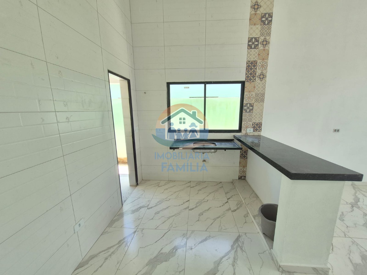 São 2 dormitórios amplos (1 suíte), sala ampla integrada a cozinha equipada com uma linda bancada em pedra, banheiro social, lavanderia coberta, além de quintal para 01 vaga de garagem.