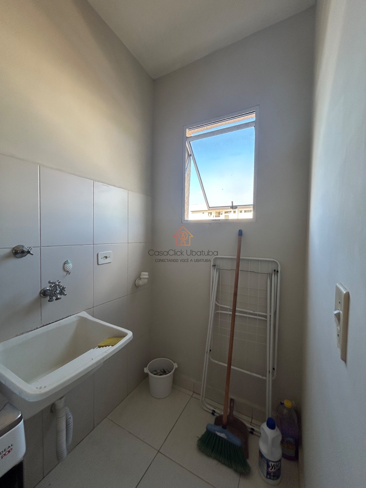 A área de serviço é prática e funcional, e a sacada proporciona um espaço extra para relaxar e apreciar a vista.