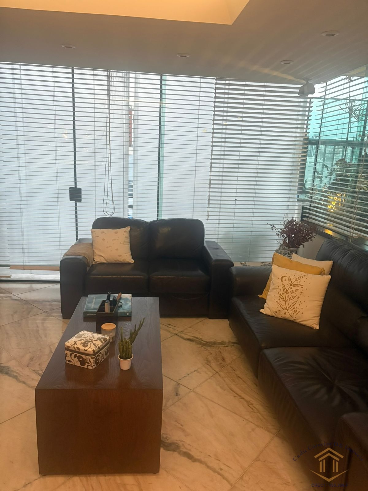 Piso em mármore natural e móveis planejados. Ambiente impecável, com manutenção rigorosamente em dia.