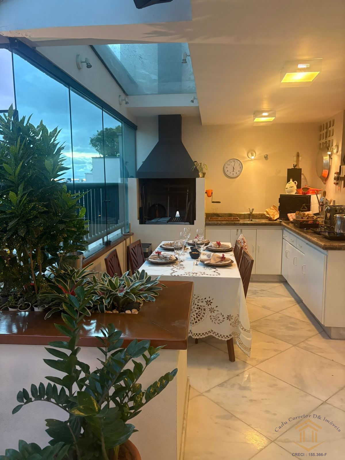 Varanda envidraçada, Três dormitórios com móveis planejados em madeira natural, Banheiros com ventilação natural, Cozinha totalmente planejada e equipada com coifa, fogão, geladeira e lava-louças, Área de serviço bem ventilada e iluminada, com despensa e banheiro de serviço.