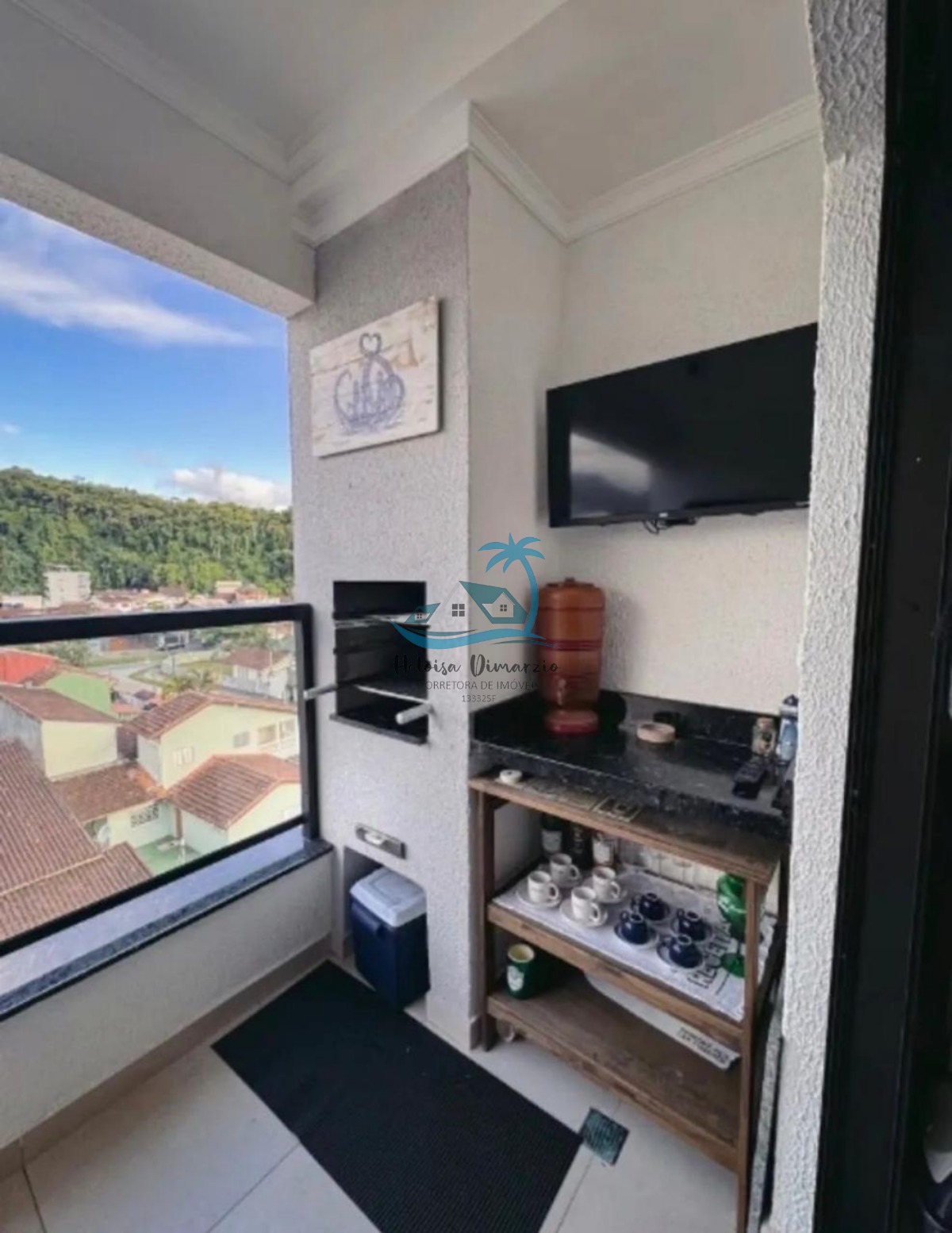 Varanda gourmet com churrasqueira.