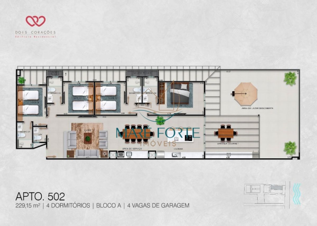 Com uma área total de 270 m² e área útil de 230 m², você terá espaço de sobra para viver bem.