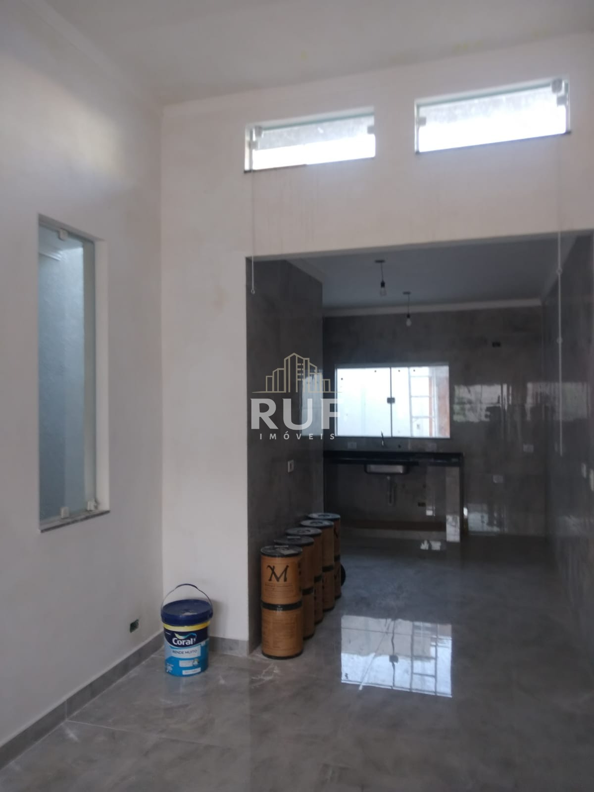 - Ampla sala com pé direito alto e cozinha integrada;