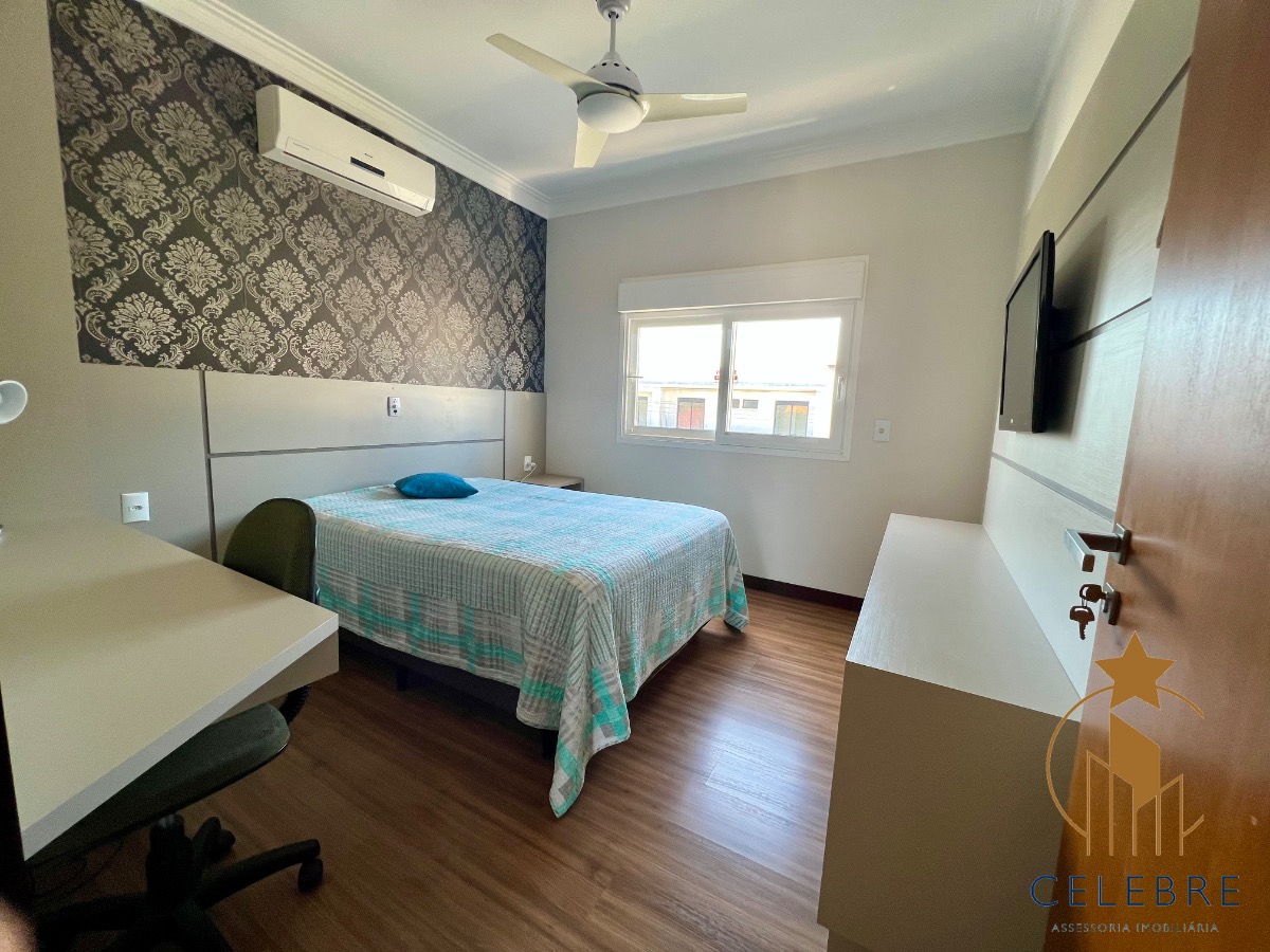 No andar térreo: ampla suíte, sala e cozinha integradas, num espaço agradável com excelente iluminação, ventilação e com vista para a piscina e área de festas.