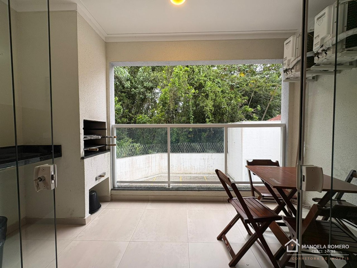 A varanda gourmet, equipada com churrasqueira, é perfeita para momentos de lazer.