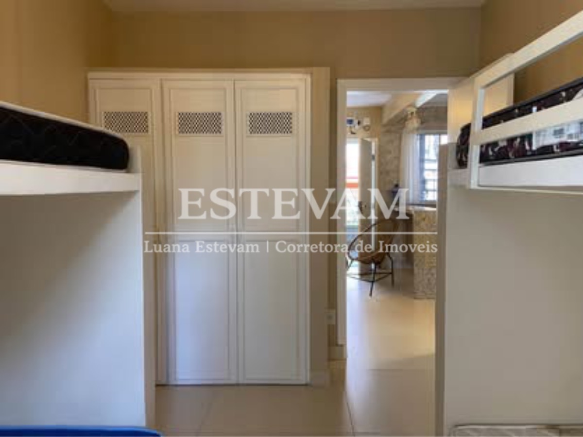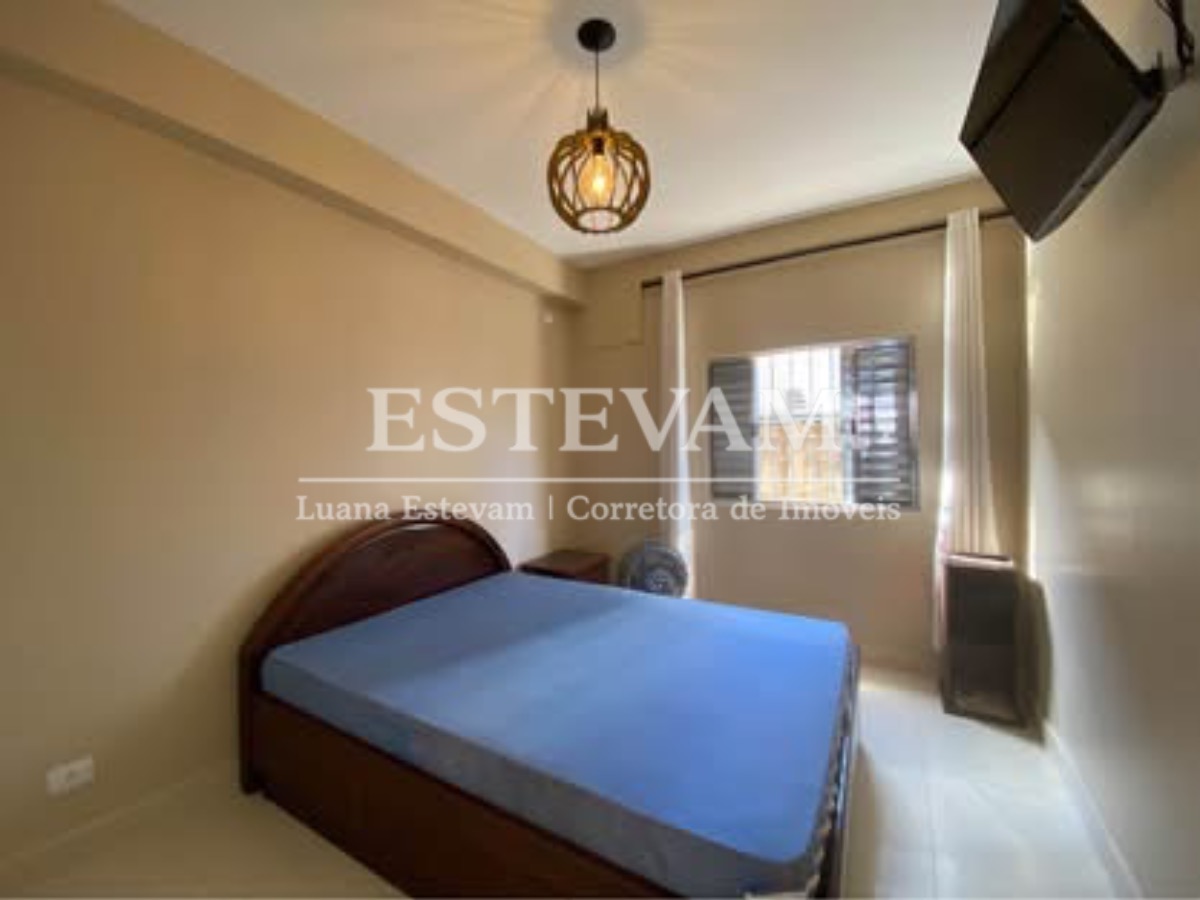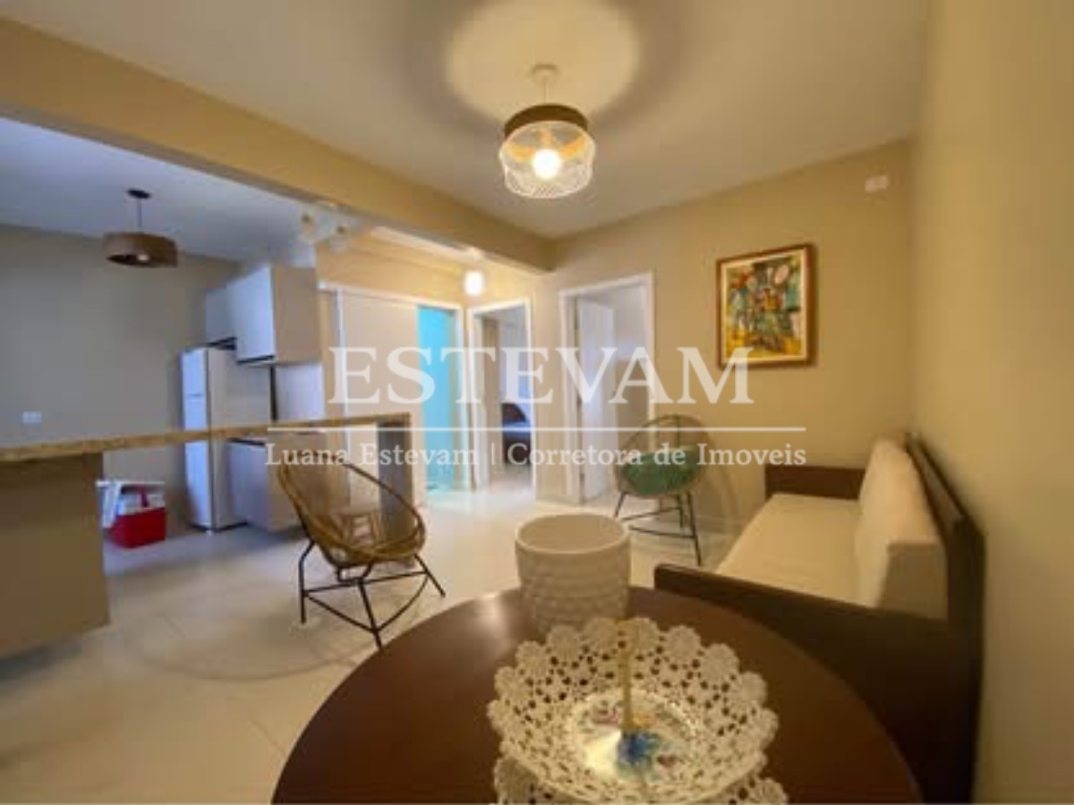 O apartamento é mobiliado e conta com armário de cozinha e armário embutido, proporcionando organização e aproveitamento de espaço.