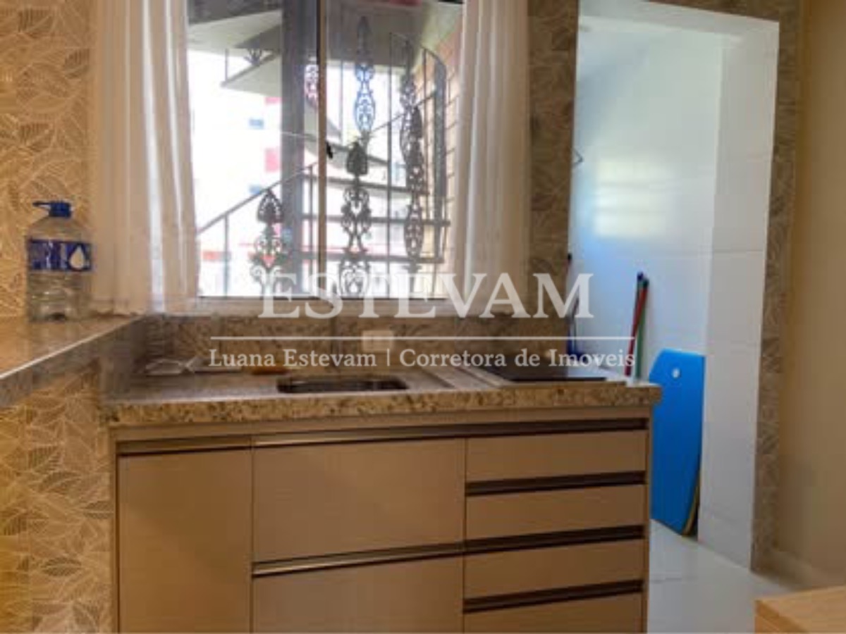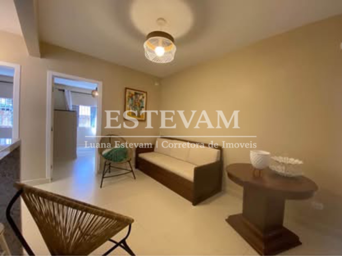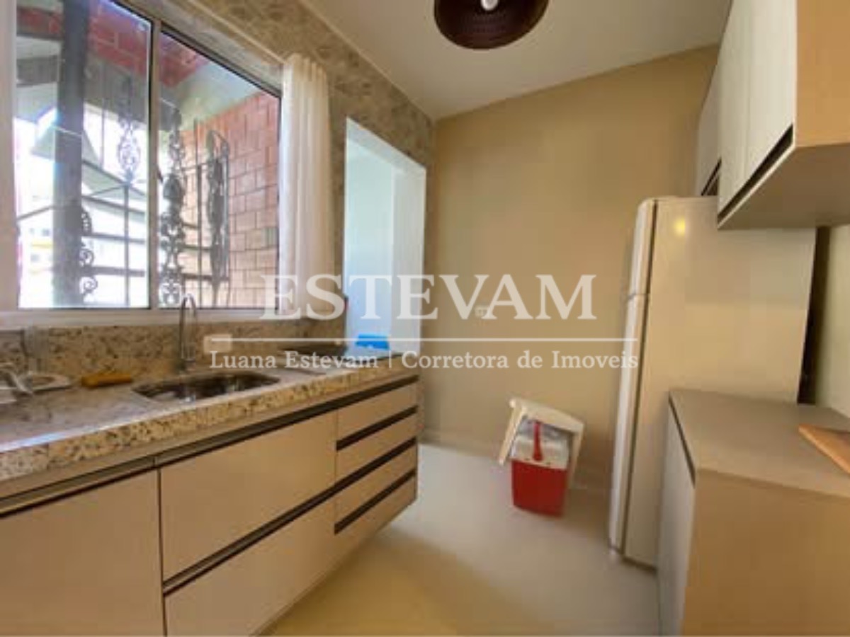 O apartamento é mobiliado e conta com armário de cozinha e armário embutido, proporcionando organização e aproveitamento de espaço.