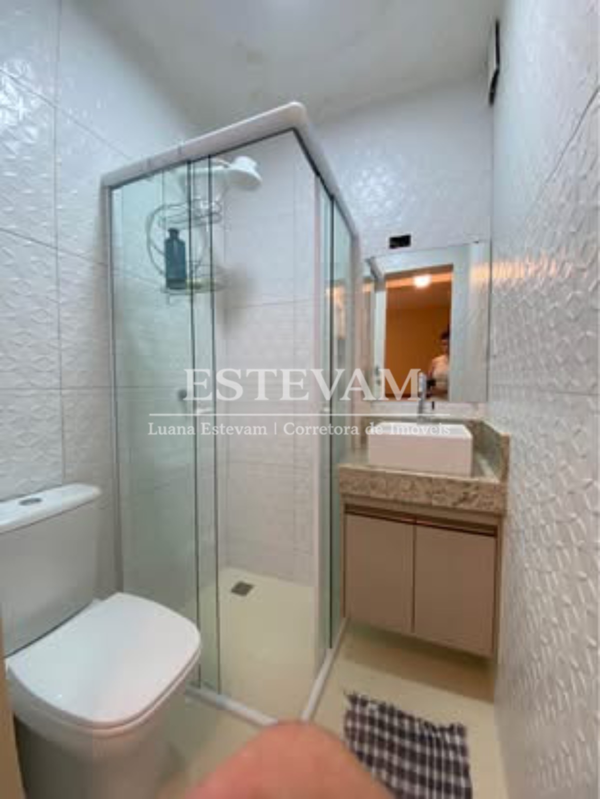 O banheiro é funcional e atende às necessidades de uma família pequena ou de um casal.