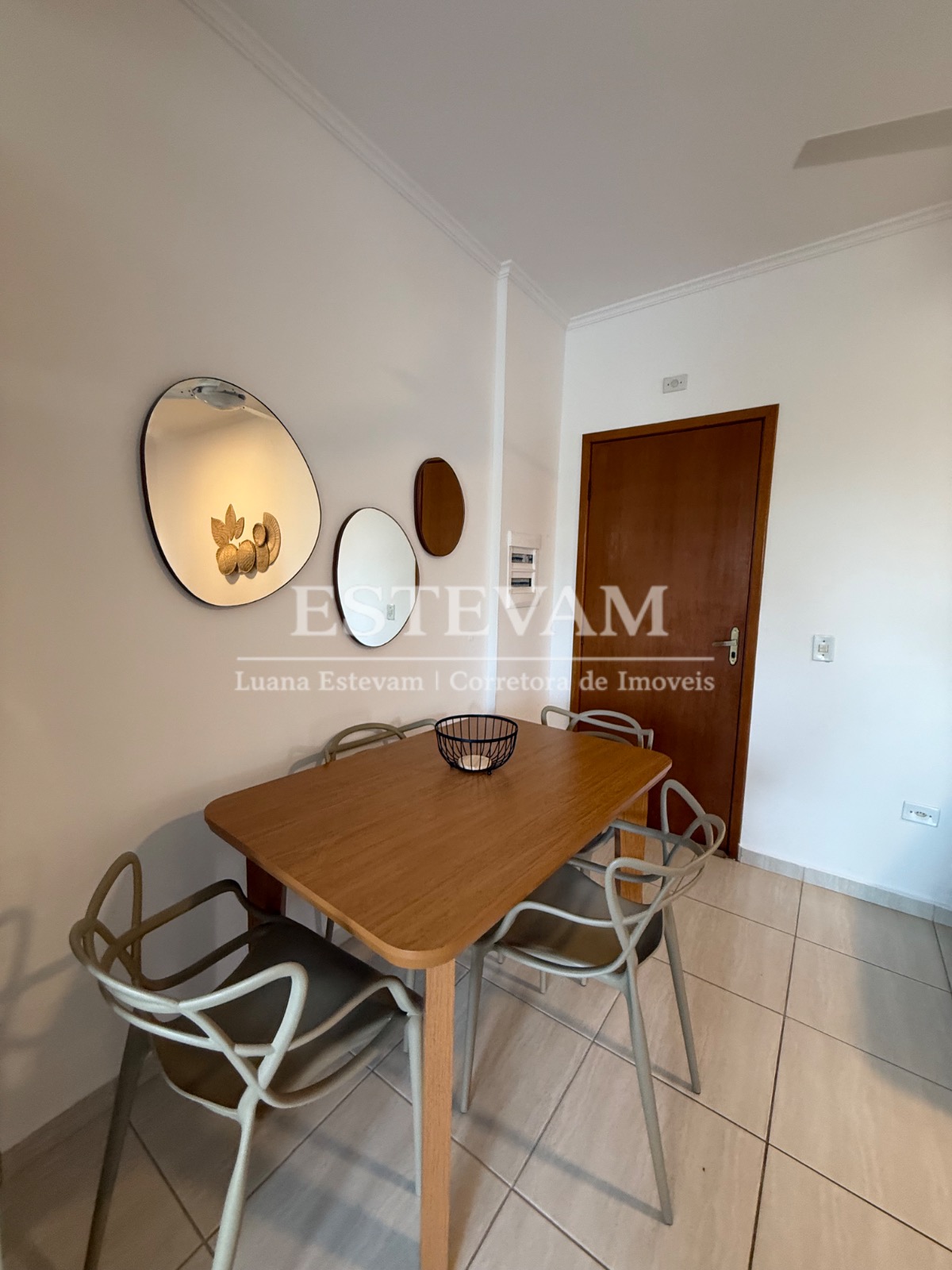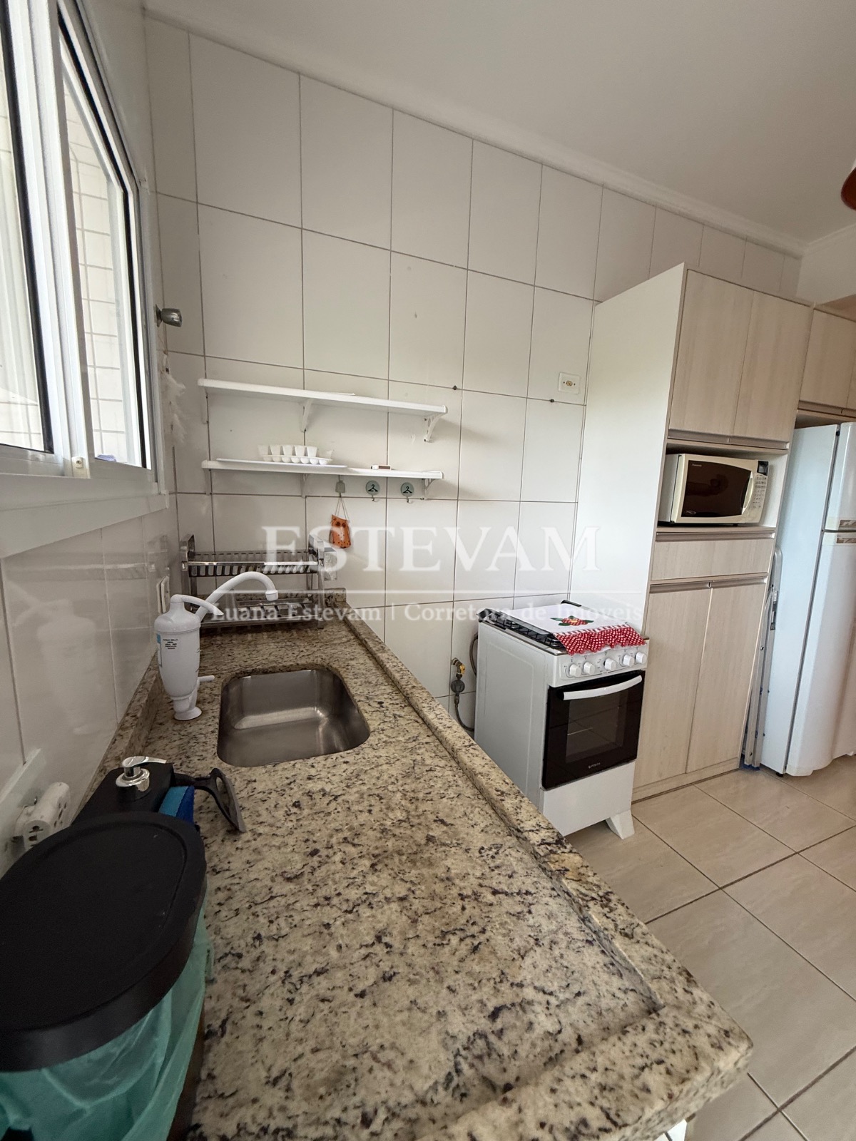 O apartamento é mobiliado e conta com armários de cozinha e embutidos, proporcionando organização e aproveitamento de espaço.