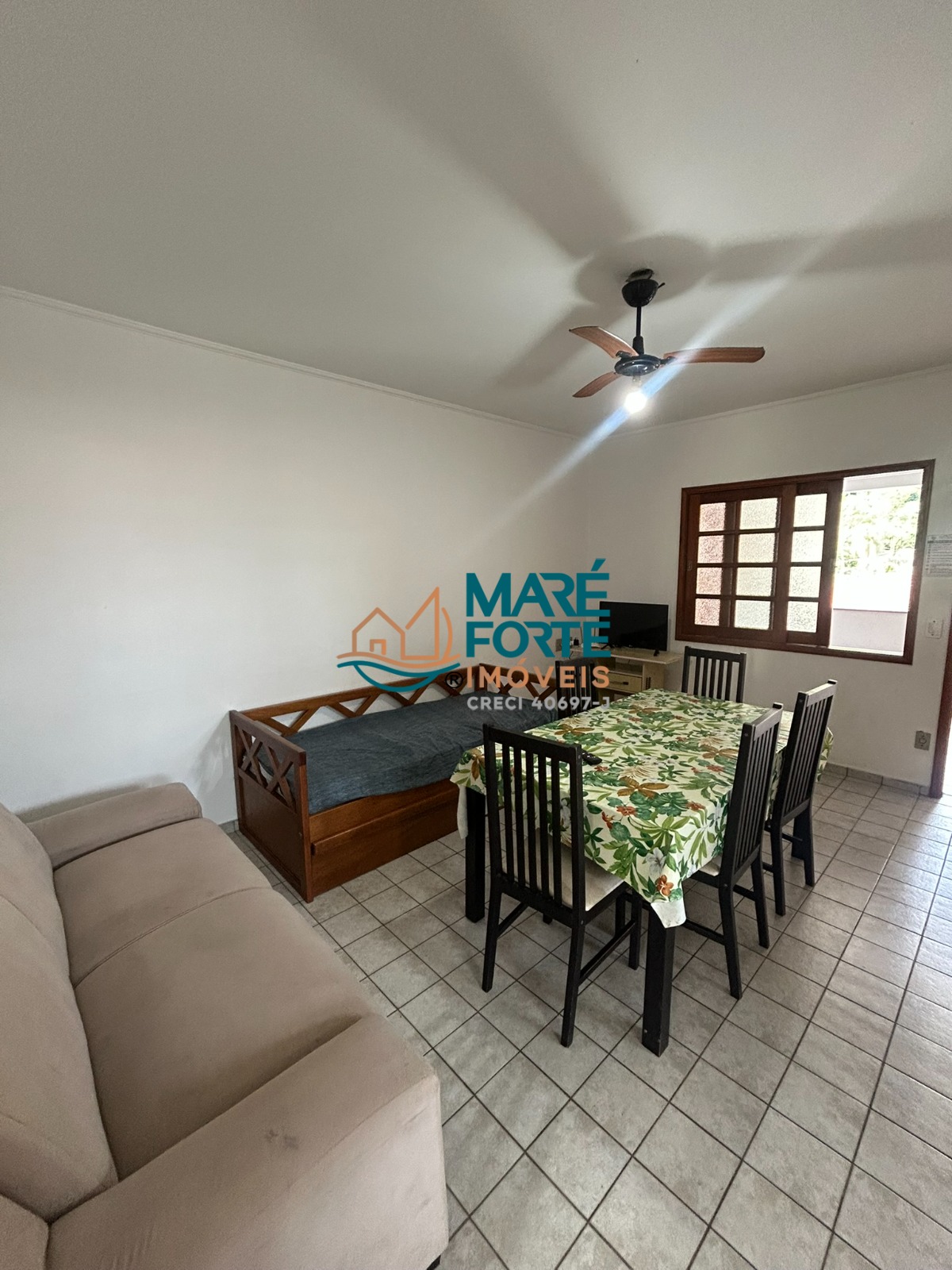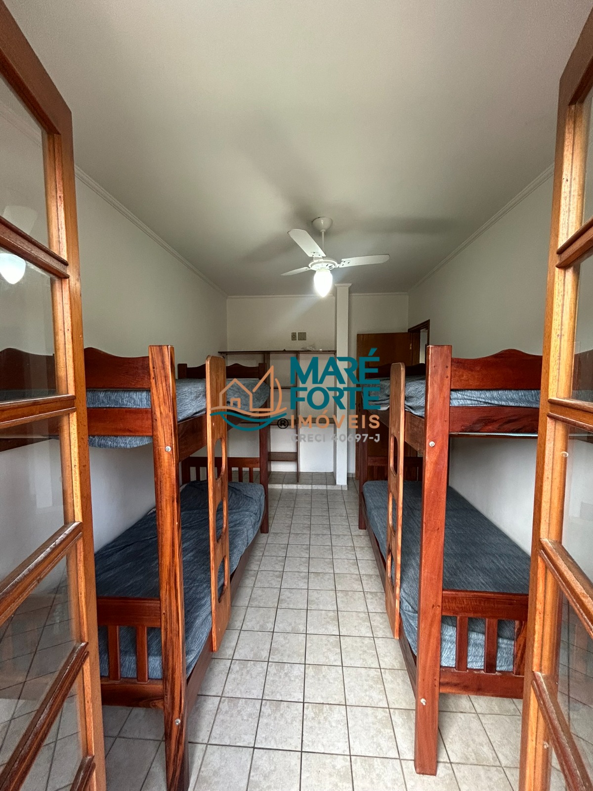 Apartamento mobiliado, cozinha independente, área de serviço, sacada nos dois dormitórios, ventiladores nos ambientes.