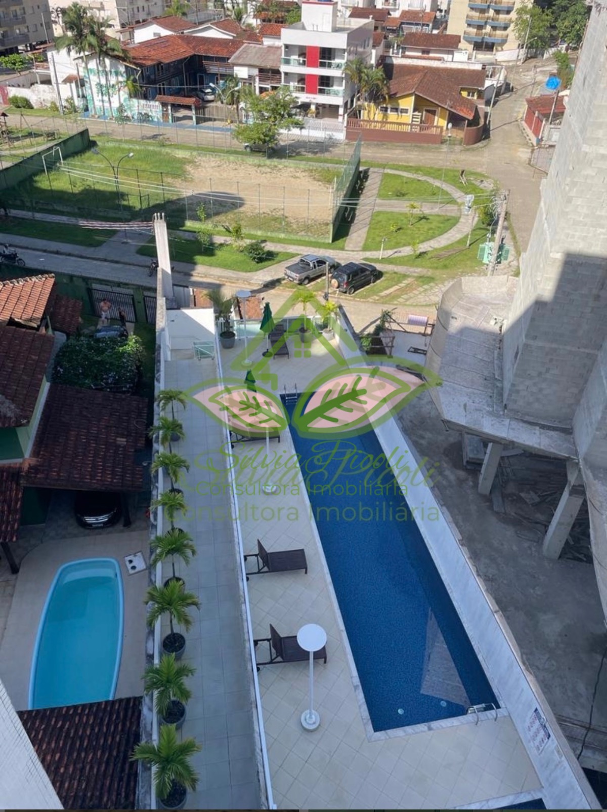 O espaço conta com um playground, jardim e piscina, ideal para momentos de lazer.