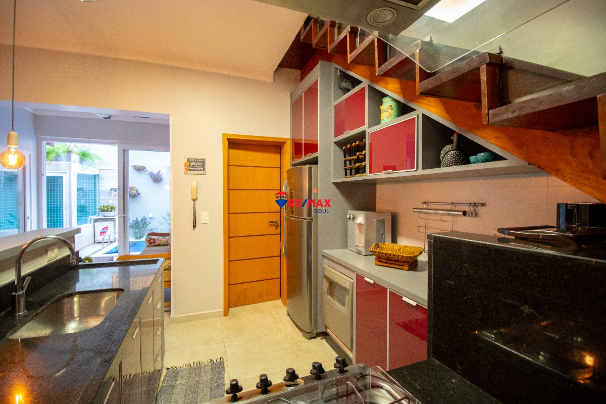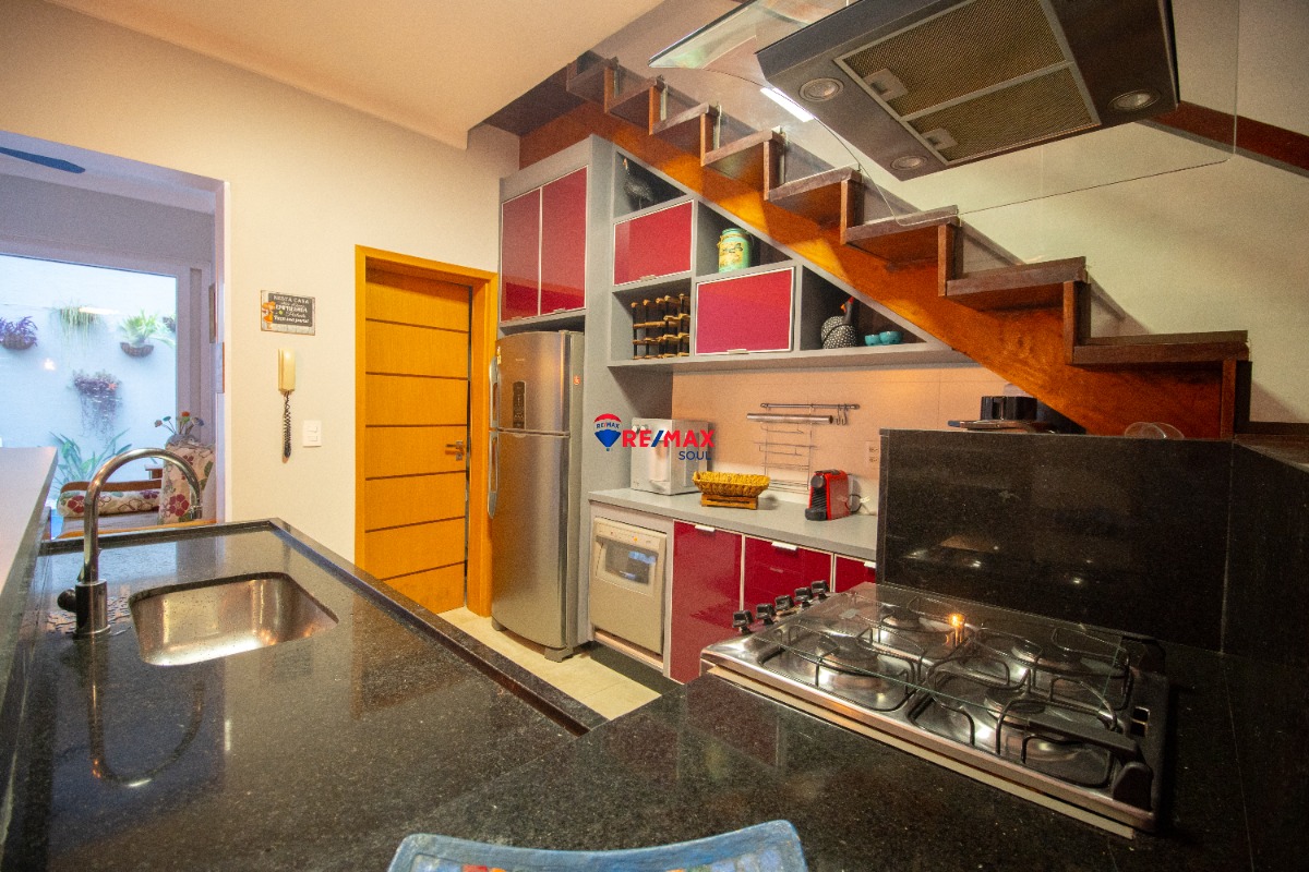 A cozinha é equipada com armários planejados, facilitando a organização do espaço.