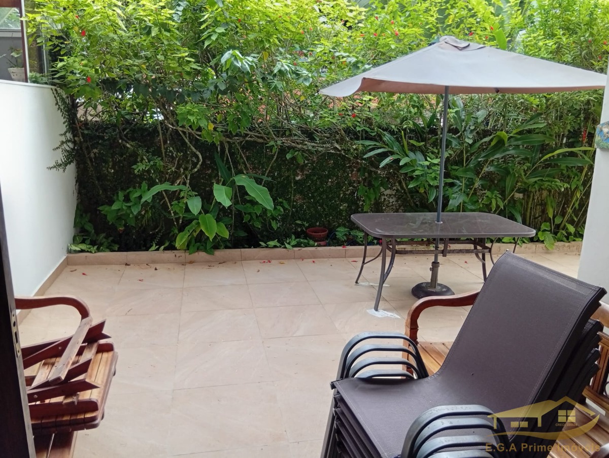 A infraestrutura inclui uma piscina, sauna, e um jardim bem cuidado, ideal para momentos de descontração.