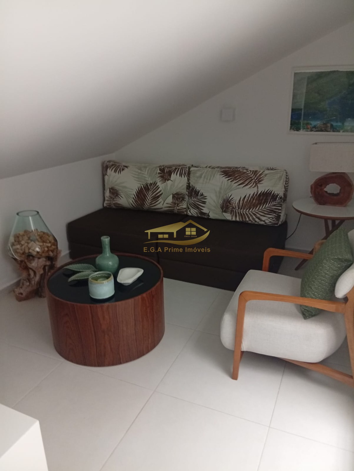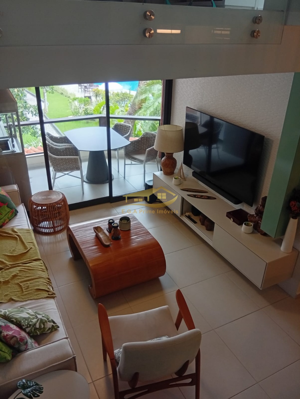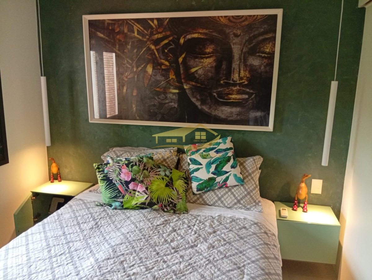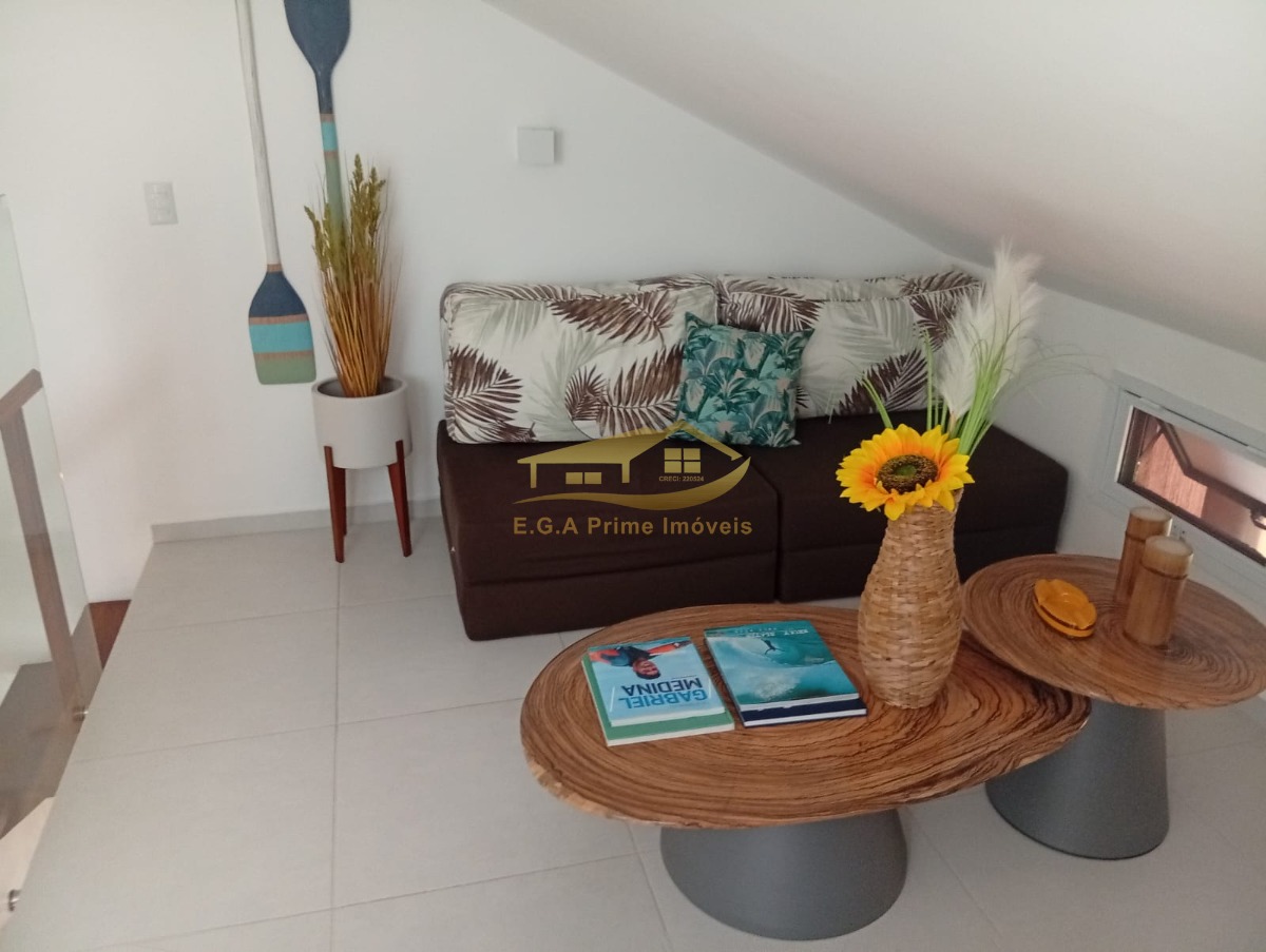 O imóvel é mobiliado e possui armários embutidos, além de um mezanino que pode ser utilizado como espaço adicional.